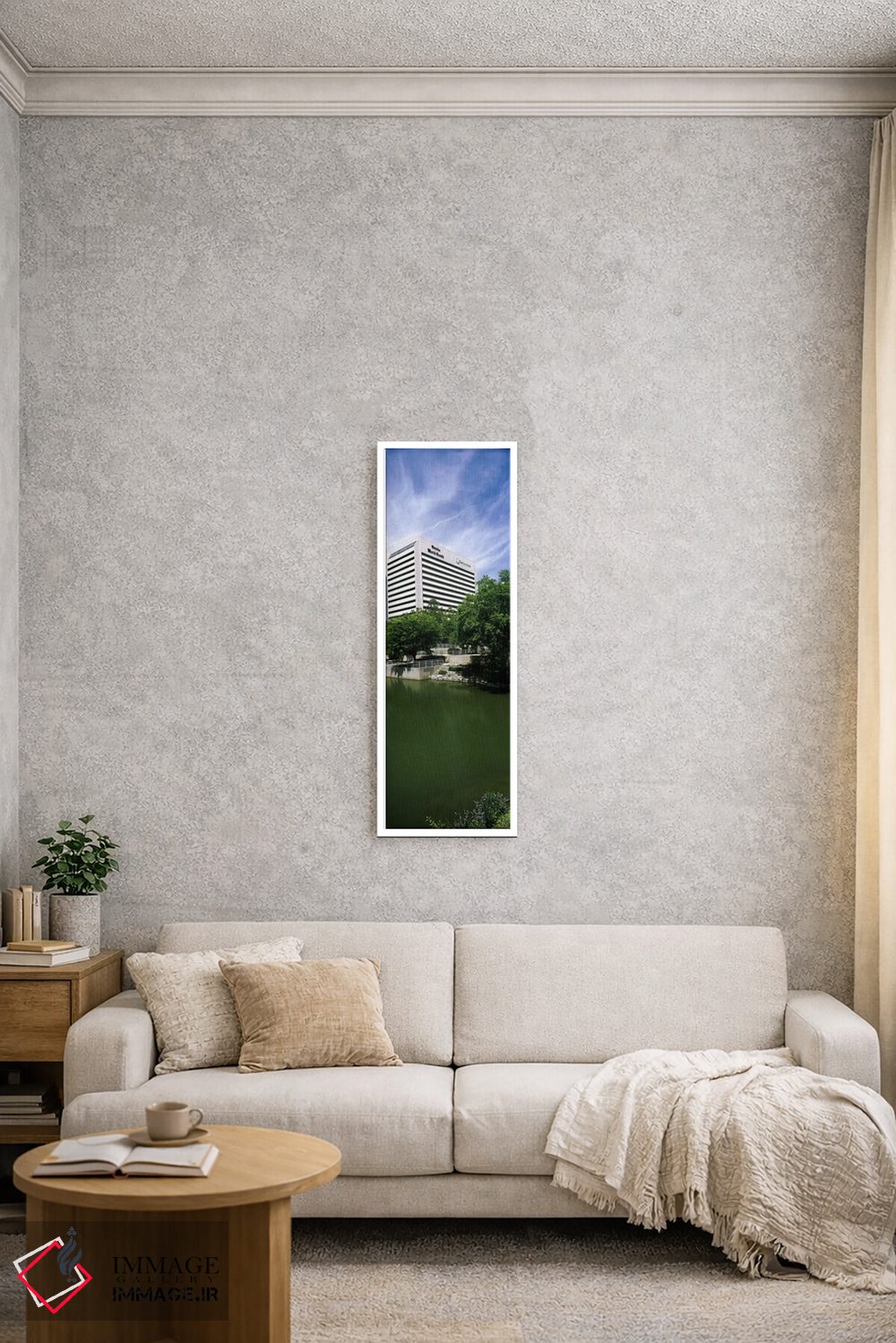 ساختار بوم گالری ایماژ طوری است که اثر روی دیوار «پرداختشده» و حرفهای دیده شود—نه پرزرقوبرقِ بیپایه؛ بلکه دقیق و خوشپرداخت. بافت ظریف کنواس کمک میکند حس اثر هنری را در نگاه نزدیک نگه میدارد بدون اغراق؛ فقط دقیقتر. در بافت ظریف کنواس، به تصویر شخصیت میدهد بدون اینکه شلوغ کند. حاصل کار، یک تابلو خوشنشین است که هم از دور اثرگذار است و هم از نزدیک خوشخوان؛ همراهِ نورپردازی درست، جلوهی گالریوار بیشتری حس میشود.