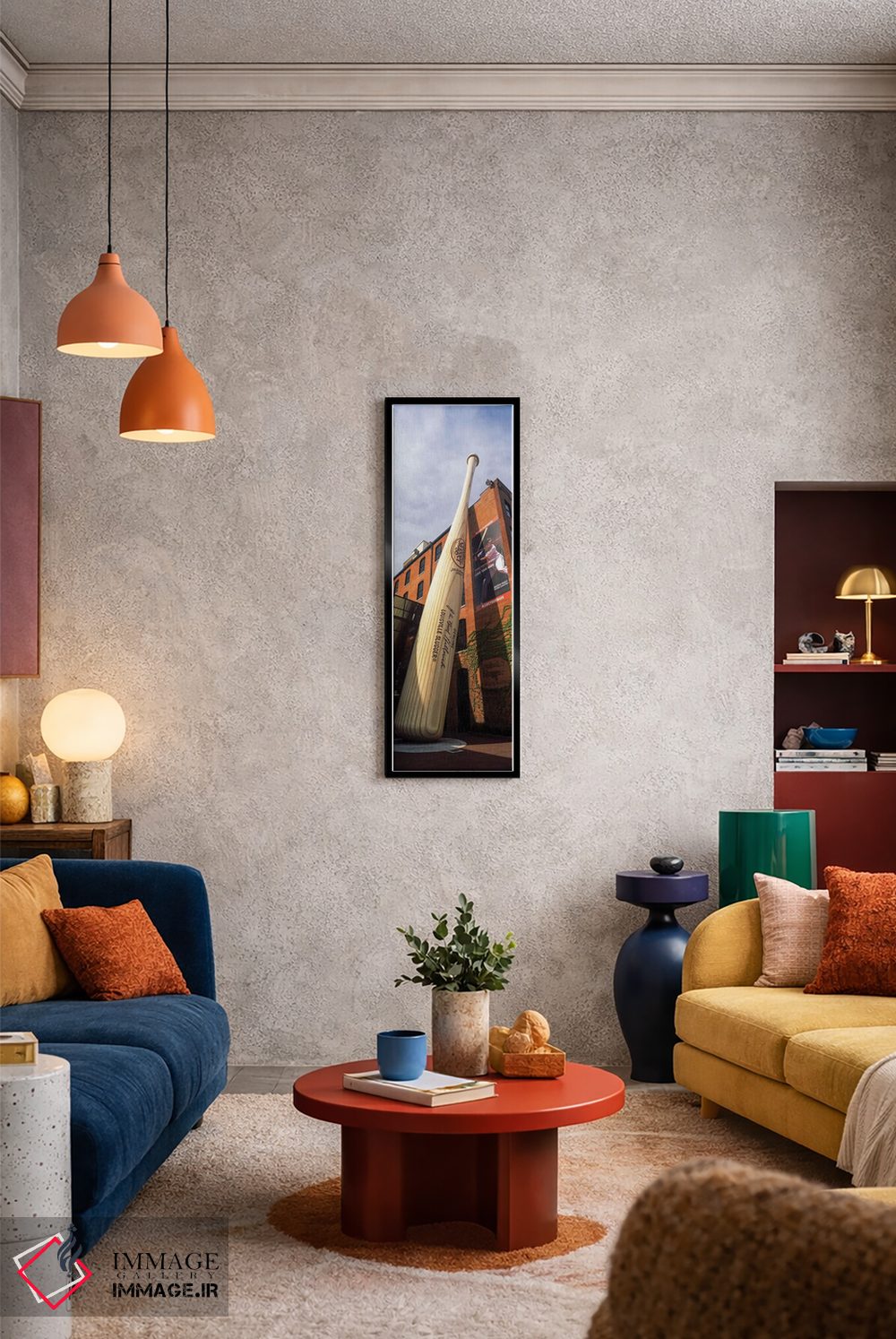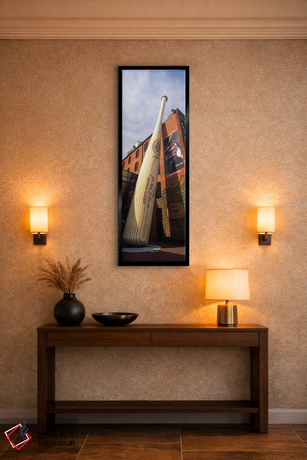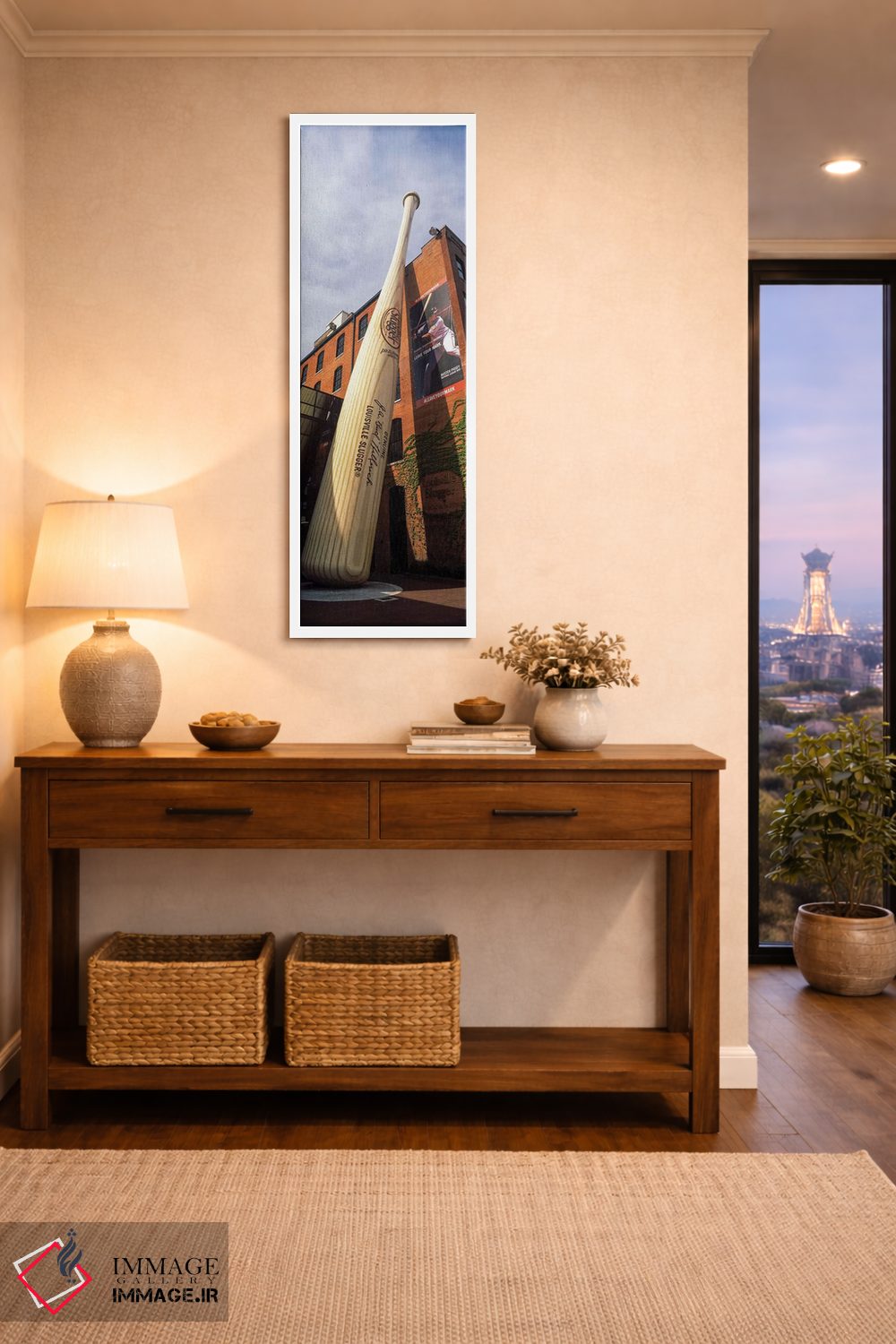 برای فضایی که میخواهید مرتبتر و حرفهایتر دیده شود، «بات غولپیکر بیسبال که بیرون موزه و کارخانه لوئیویل اسلاگر، لوئیویل، کنتاکی، ایالات متحده آمریکا را زینت میدهد» اثرِ «پانورامیک ایمجز (استودیو عکاسی عریض)» تضادهای رنگی را خوشقوارهتر میکند؛ برای دیوار بالای کنسول یا شومینه پیشنهاد میشود. اگر میخواهید مهمانها مکث کنند، این اثر دلیل خوبیست.