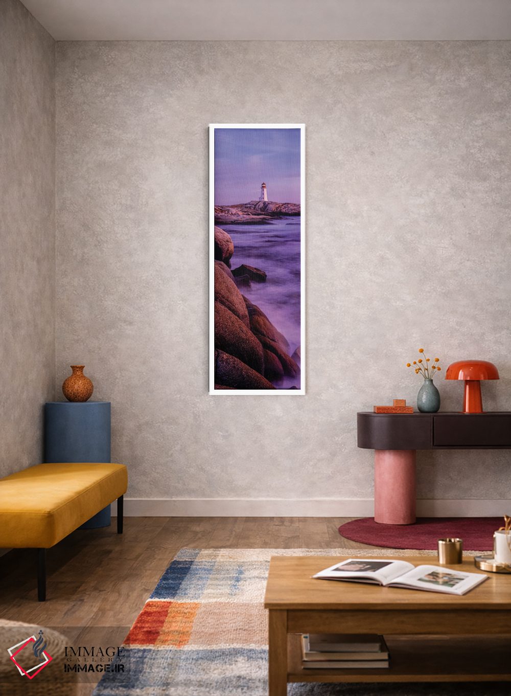 اگر میخواهید دیوار از «پسزمینه» بیرون بیاید، «فانوس دریایی کپه گیسی کُو، جزیره کِیپ برتون، نوا اسکوشیا، کانادا» اثرِ «پانورامیک ایمجز (استودیو عکاسی عریض)» به دیوار، شخصیت و جهت میدهد؛ برای نشیمنهای صمیمی و پذیراییهای شیک پیشنهاد میشود. با مبلمان خنثی، تضاد دلنشینی میسازد.