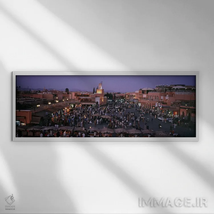 تابلو دکوراتیو Marrakech, Morocco,جامع الفنا در شب، مراکش اثر پانورامیک ایمجز