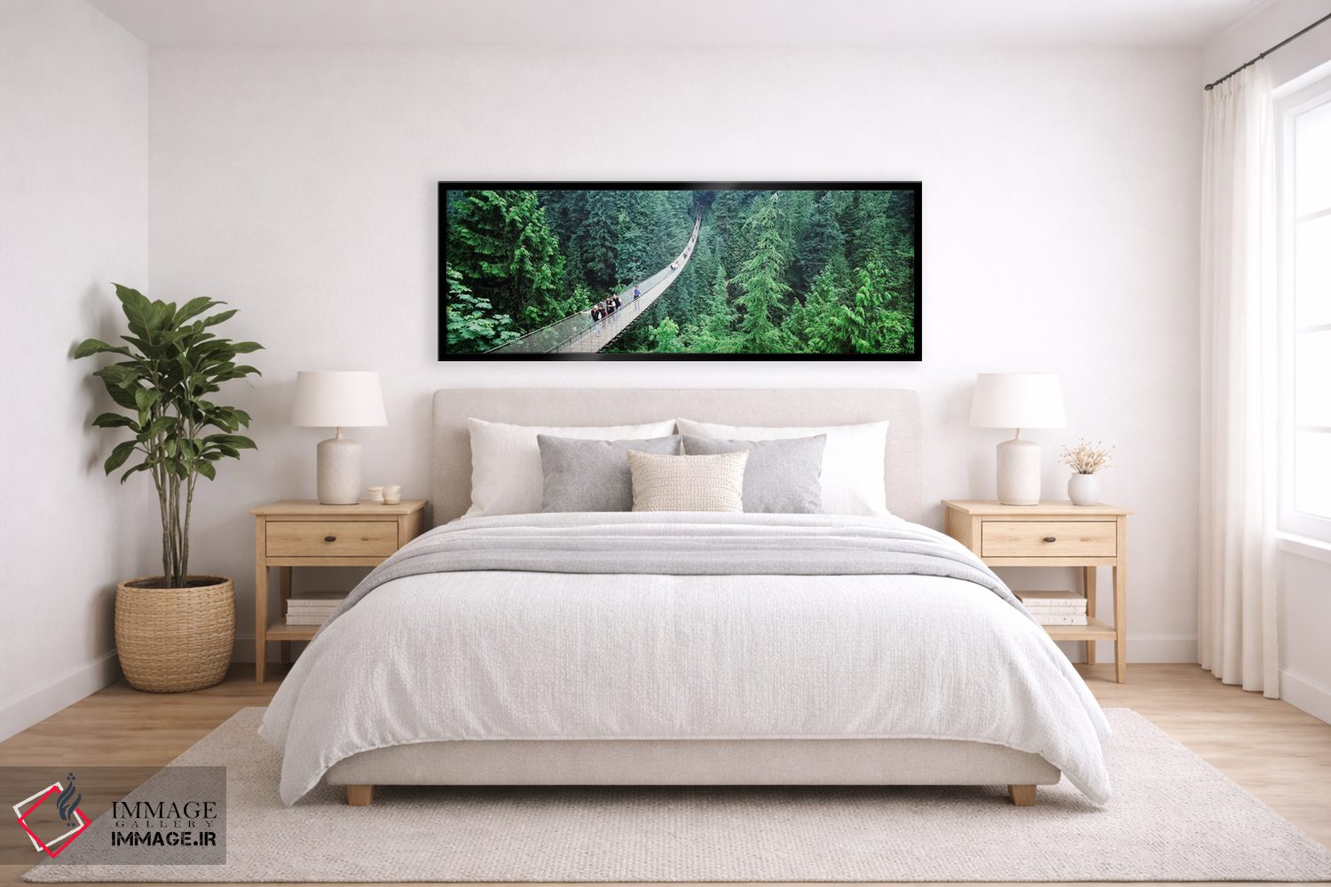 اگر میخواهید دیوار از «پسزمینه» بیرون بیاید، «North Vancouver، British Columbia، Canada، پل معلق کاپیلالو، شمال ونکوور، بریتیش کلمبیا، کانادا» اثرِ «پانورامیک ایمجز (استودیو عکاسی عریض)» در دکور، مثل یک امضای ظریف عمل میکند؛ برای دکورهایی که بافت و جزئیات در آن مهم است پیشنهاد میشود. با مبلمان خنثی، تضاد دلنشینی میسازد.