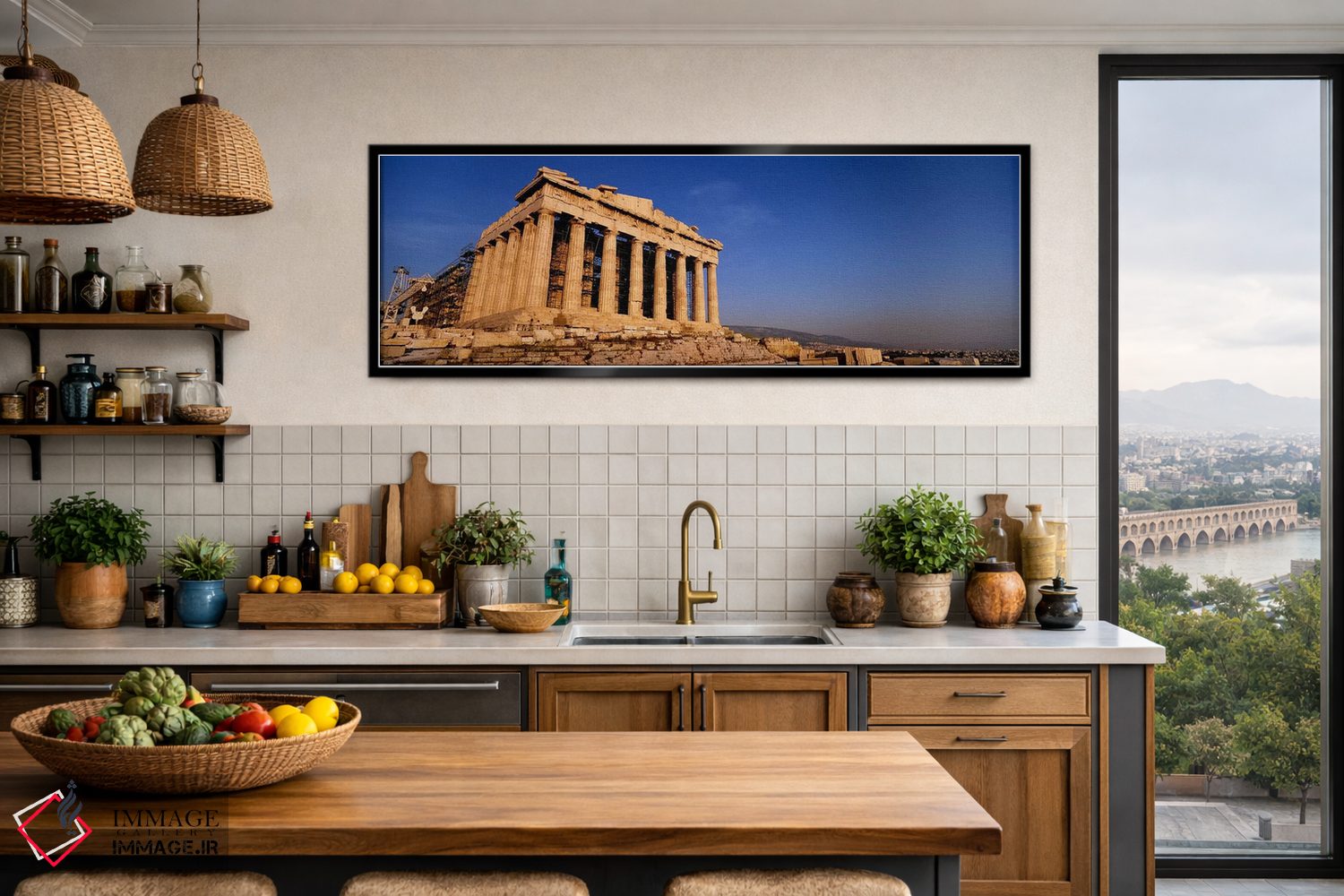 برای خانههایی که به زیباییِ آرام علاقه دارند، «Parthenon، Athens، Greece، ویرانههای یک معبد، پارتنون، آتن، یونان» اثرِ «پانورامیک ایمجز (استودیو عکاسی عریض)» تضادهای رنگی را خوشقوارهتر میکند؛ برای دکورهای کلاسیک با چوب و پارچه پیشنهاد میشود. هم از دور چشمگیر است و هم از نزدیک پرداخت دارد.