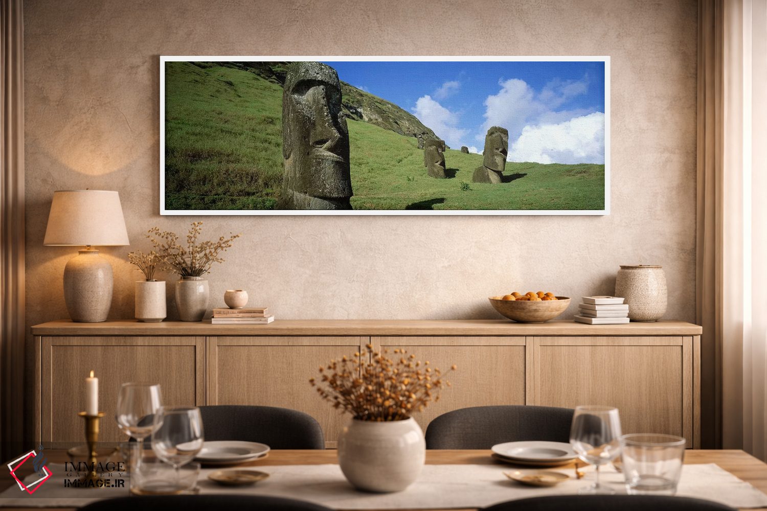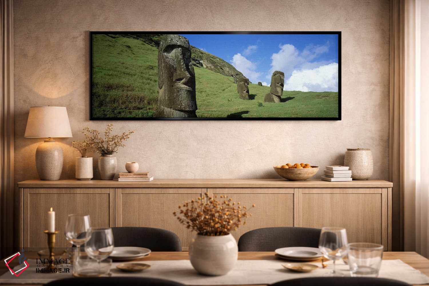 «Easter Islands، Chile، سرهای سنگی، جزایر ایستر، شیلی» اثرِ «پانورامیک ایمجز (استودیو عکاسی عریض)» میتواند به چیدمان، عمق و وقار بدهد؛ برای خانههایی که به هماهنگی رنگها اهمیت میدهند پیشنهاد میشود. برای پروژههای طراحی داخلی هم گزینهای قابل اتکاست.