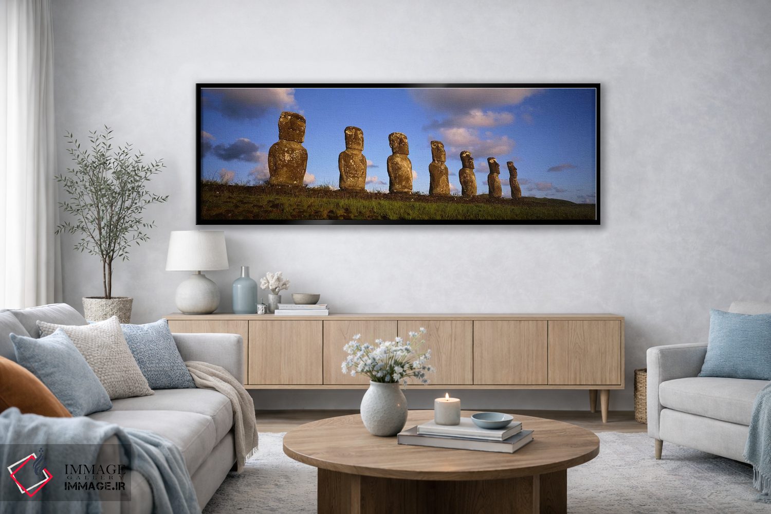 گاهی یک اثر کافیست تا فضا جمعوجور شود؛ «Rapa Nui (Easter Island)، Valparaiso Region، Chile، آهو آکیوی، راپا نوی (جزیره ایستر)، منطقه والپارایسو، شیلی» اثرِ «پانورامیک ایمجز (استودیو عکاسی عریض)» به دیوار، شخصیت و جهت میدهد؛ برای اتاق خوابهای آرام و روشن پیشنهاد میشود. با مبلمان خنثی، تضاد دلنشینی میسازد.
