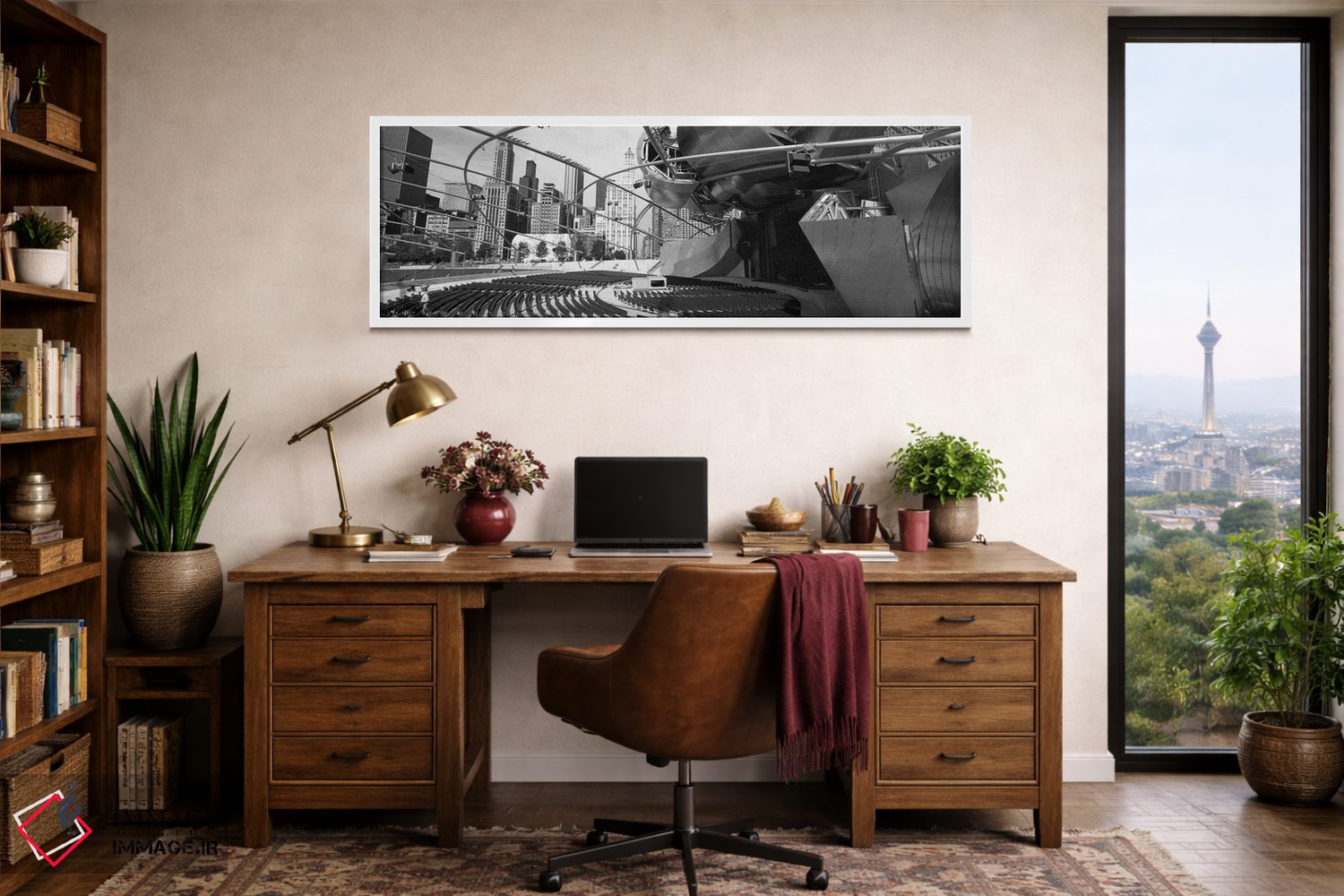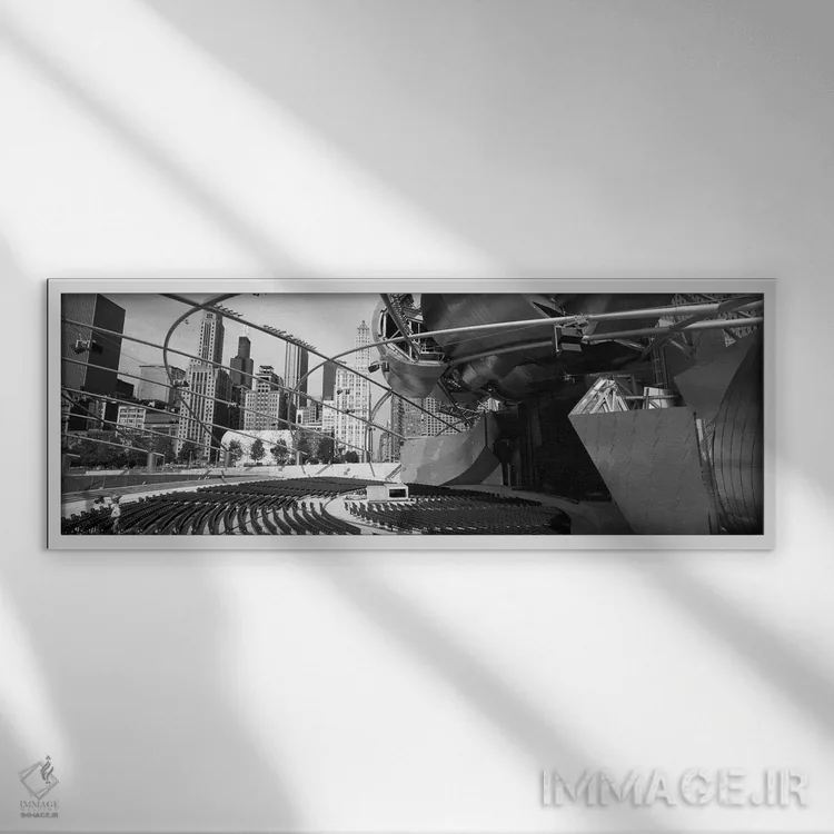 وقتی چیدمان را با دقت میچینید، «Pritzker Pavilion، Millennium Park، Chicago، Illinois، USA، نمای زاویه پایین از ساختمانهای شهری، پاویون پریتزکر، پارک میلنیوم، شیکاگو، ایلینوی، آمریکا» اثرِ «پانورامیک ایمجز (استودیو عکاسی عریض)» اتاق را جمعوجورتر و مرتبتر نشان میدهد؛ برای فضاهایی با نور طبیعی پیشنهاد میشود. به فضا حس «گالری خانگی» میدهد، بدون اینکه اغراق کند.