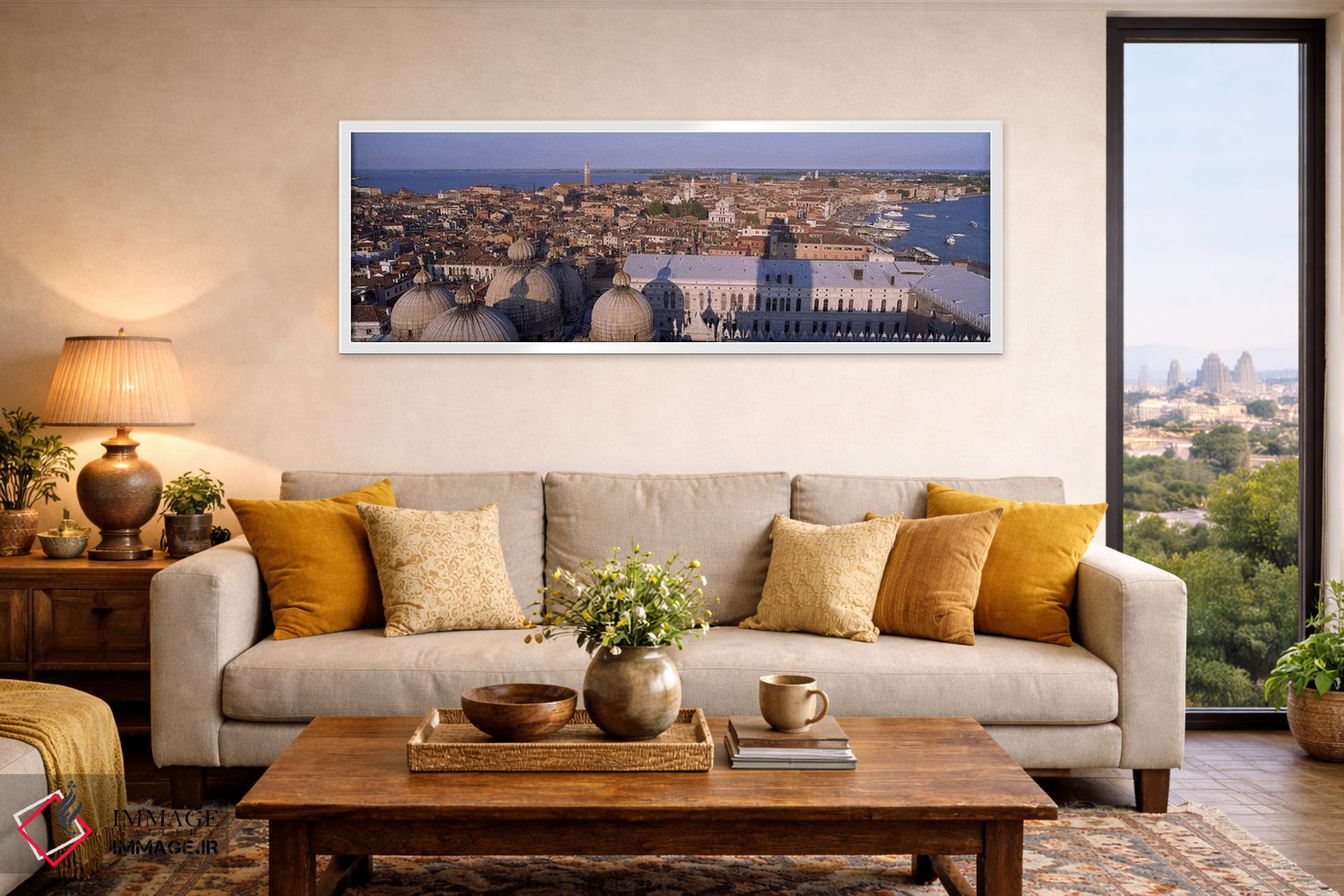 وقتی چیدمان را با دقت میچینید، «Venice، Italy، نمای بالا از شهر، ونیز، ایتالیا» اثرِ «پانورامیک ایمجز (استودیو عکاسی عریض)» تضادهای رنگی را خوشقوارهتر میکند؛ برای فضاهایی با نور طبیعی پیشنهاد میشود. برای هدیه دادن هم انتخابی محترمانه و امن است.