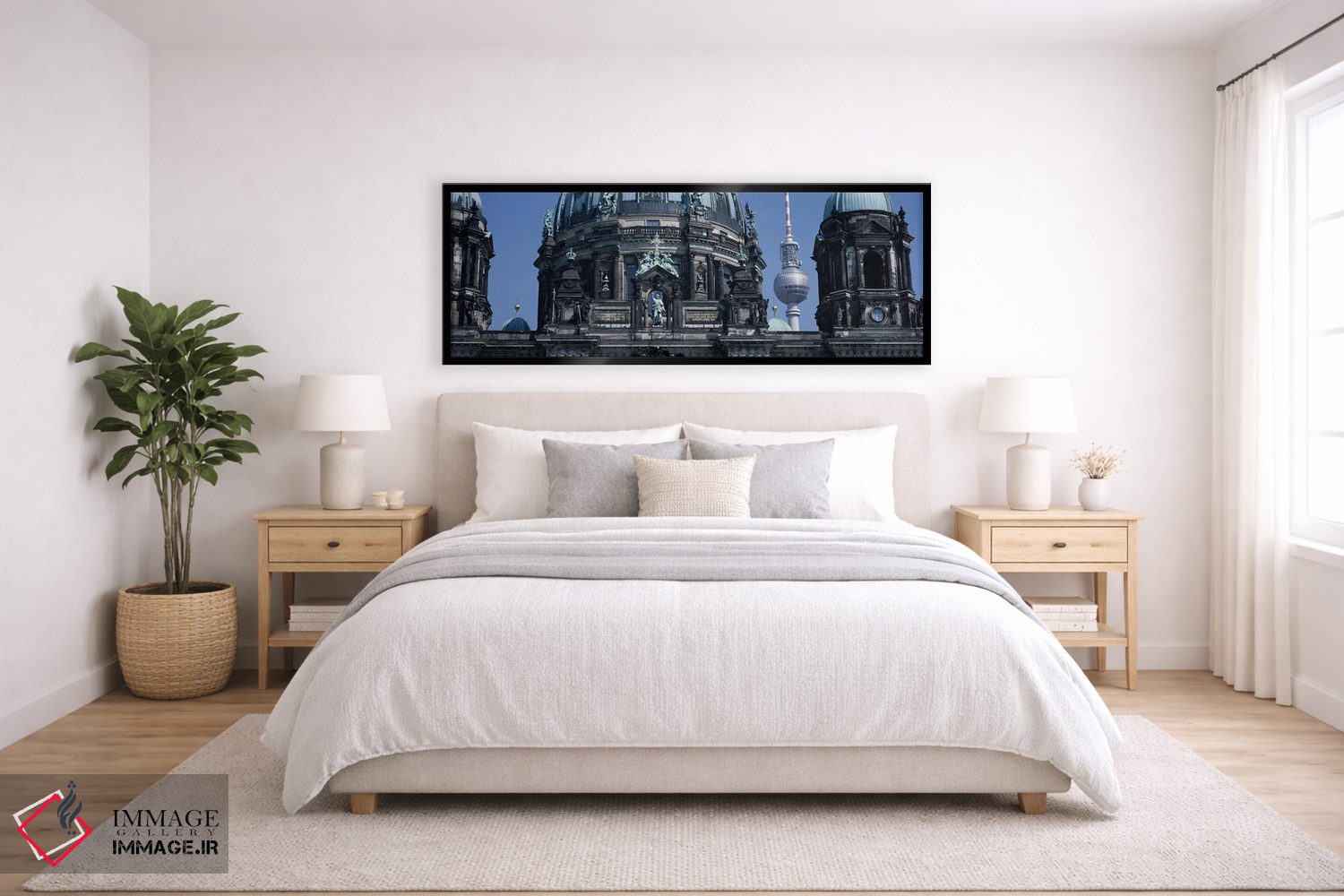 برای فضایی که میخواهید مرتبتر و حرفهایتر دیده شود، «Berliner Dom، with Television Tower (Fernsehturm) in distance، Berlin، Germany، نمای زاویه پایین از کلیسا، برلینر دوم، با برج تلویزیون در پسزمینه، برلین، آلمان» اثرِ «پانورامیک ایمجز (استودیو عکاسی عریض)» در کنار مبلمان، خوشنشین و هماهنگ مینشیند؛ برای فضاهایی که میخواهید مرکز توجه داشته باشند پیشنهاد میشود. اگر میخواهید مهمانها مکث کنند، این اثر دلیل خوبیست.