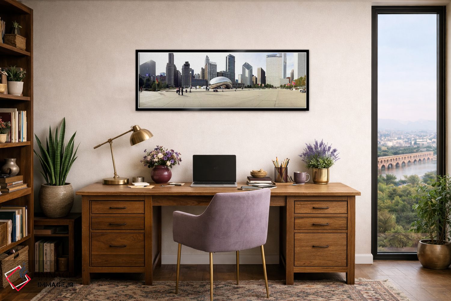 برای دیواری که دوست دارید «حرف داشته باشد»، «Millennium Park، Chicago، Illinois، USA، ساختمانهایی در پارک میلنیوم، شیکاگو، ایلینوی، ایالات متحده آمریکا» اثرِ «پانورامیک ایمجز (استودیو عکاسی عریض)» سلیقهٔ صاحبخانه را بیاغراق نشان میدهد؛ برای کافهها و فضاهای عمومی کوچک پیشنهاد میشود. حضورش روی دیوار «مرتب» است؛ نه پر سر و صدا، نه بیاثر.