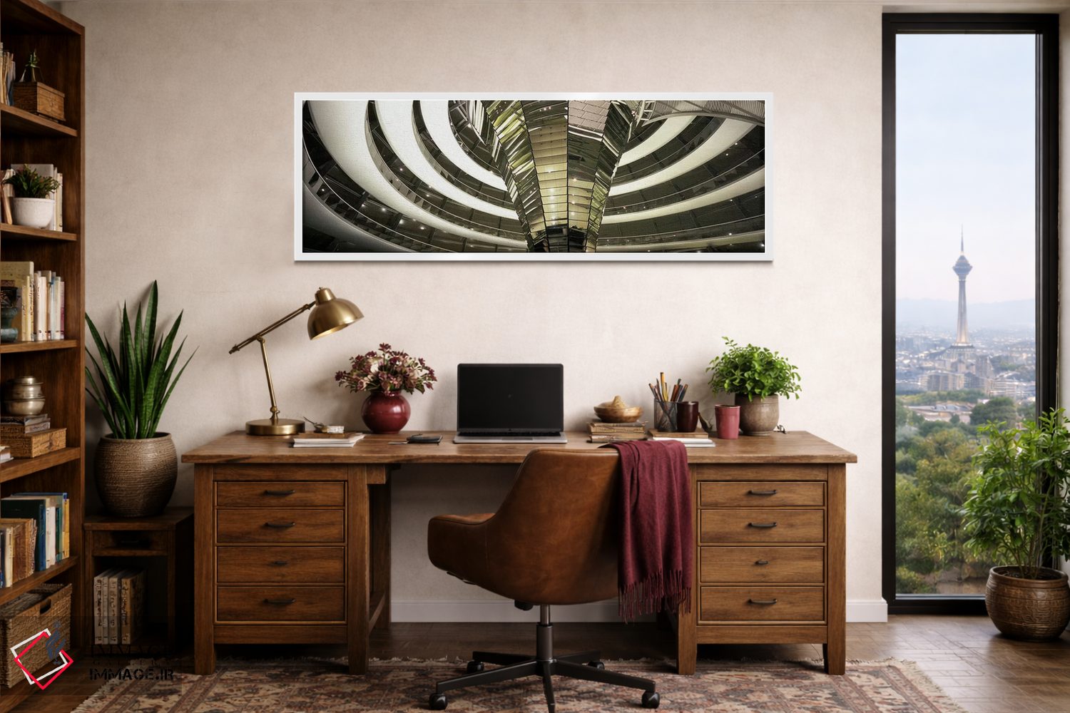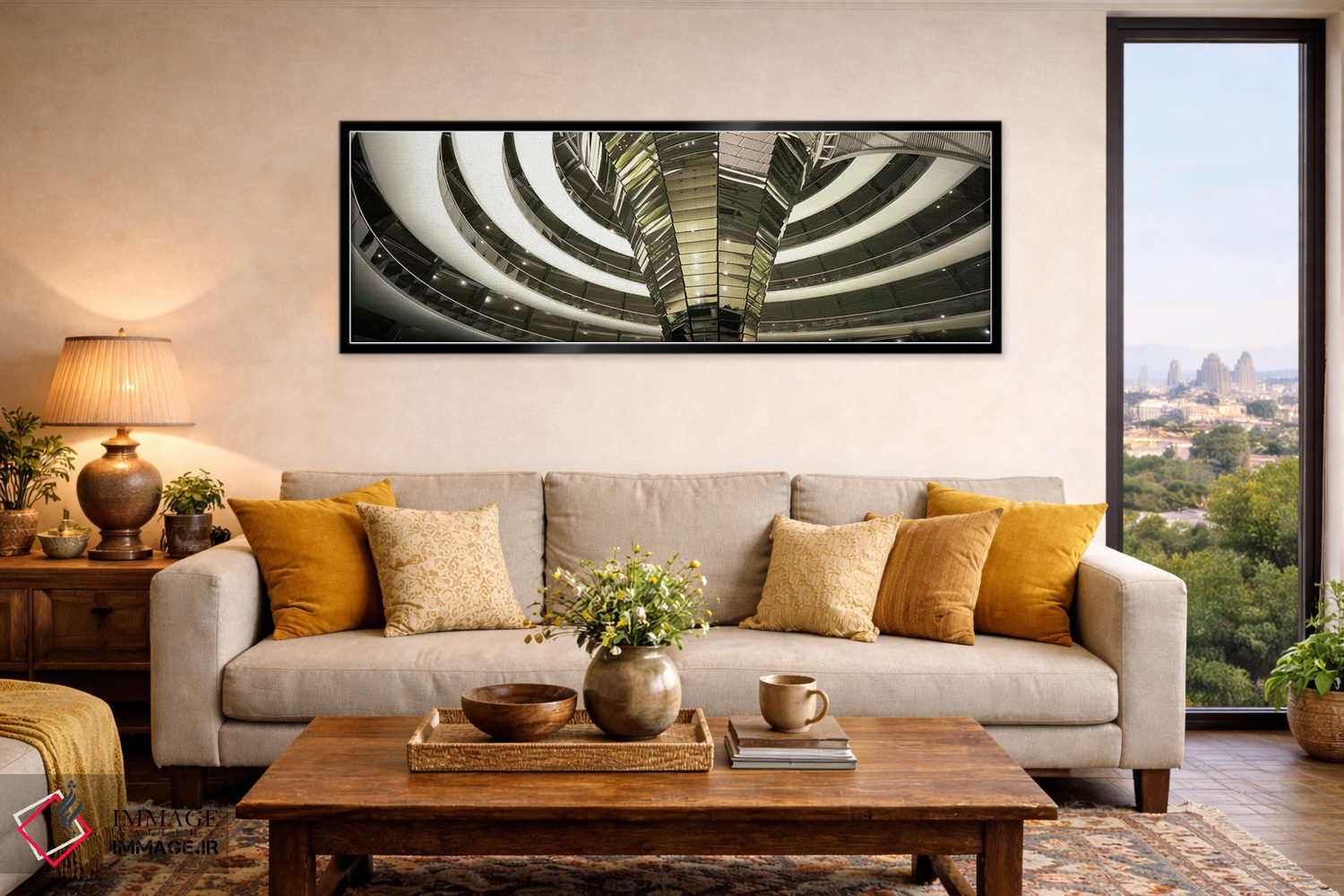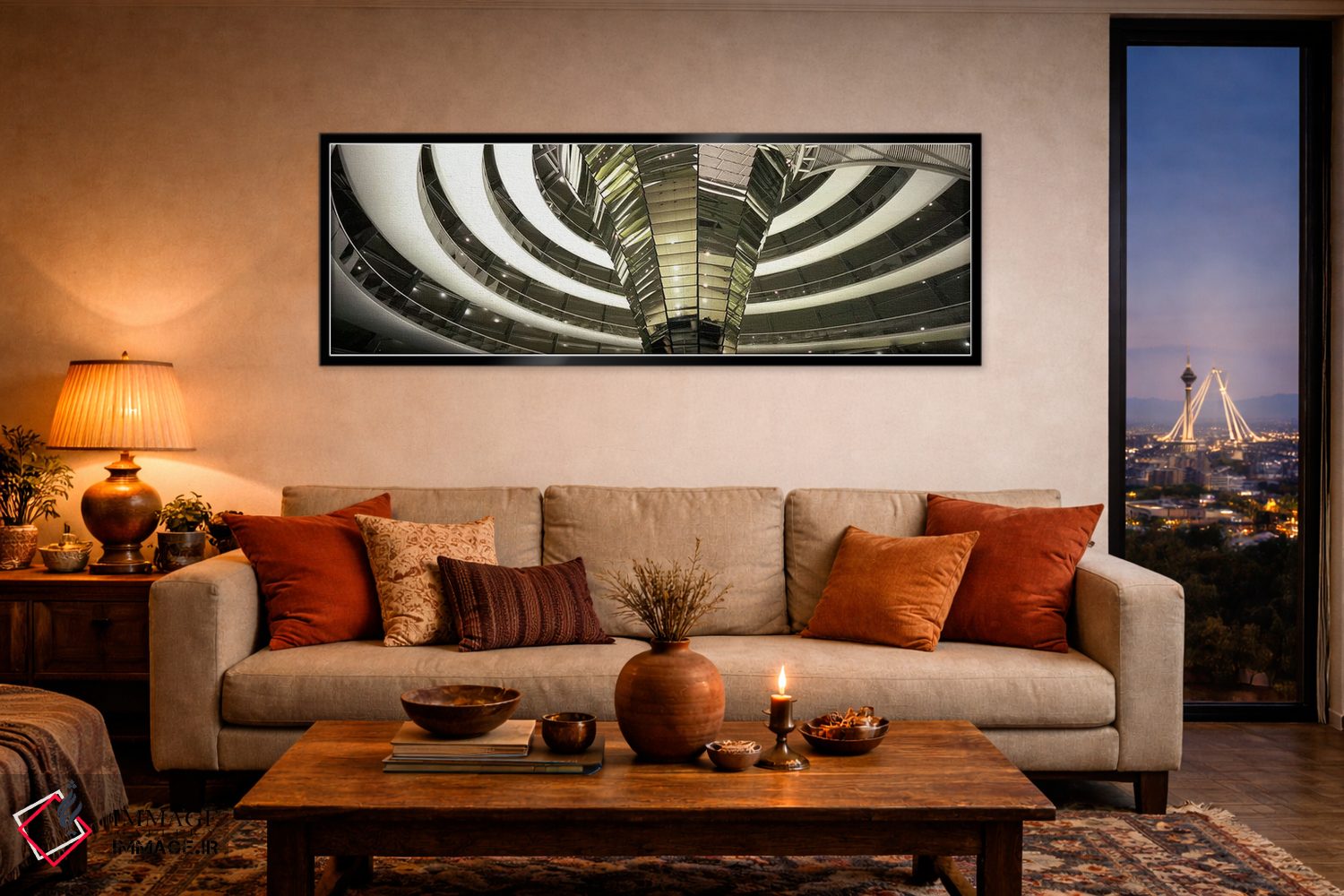 بوم گالری ایماژ نسخهی دکوراتیوِ سطحبالا از یک اثر هنری است؛ روی کنواس سفیدِ یکدست و بدون اسید با فرآیند چاپ حرفهای جیکلی (Giclée) و کنترل دقیق تونها با رنگهای آرشیوی UltraChrome HDR برای طبیعیتر دیده شدن رنگها روی دیوار، در گذارهای رنگی، لطافت بیشتری حس میشود. کلافکشی مرتب و یراق نصب استاندارد، تجربهی نصب را ساده میکند.