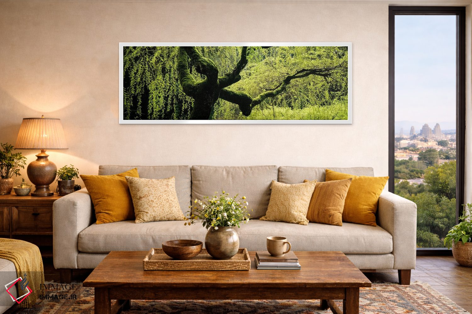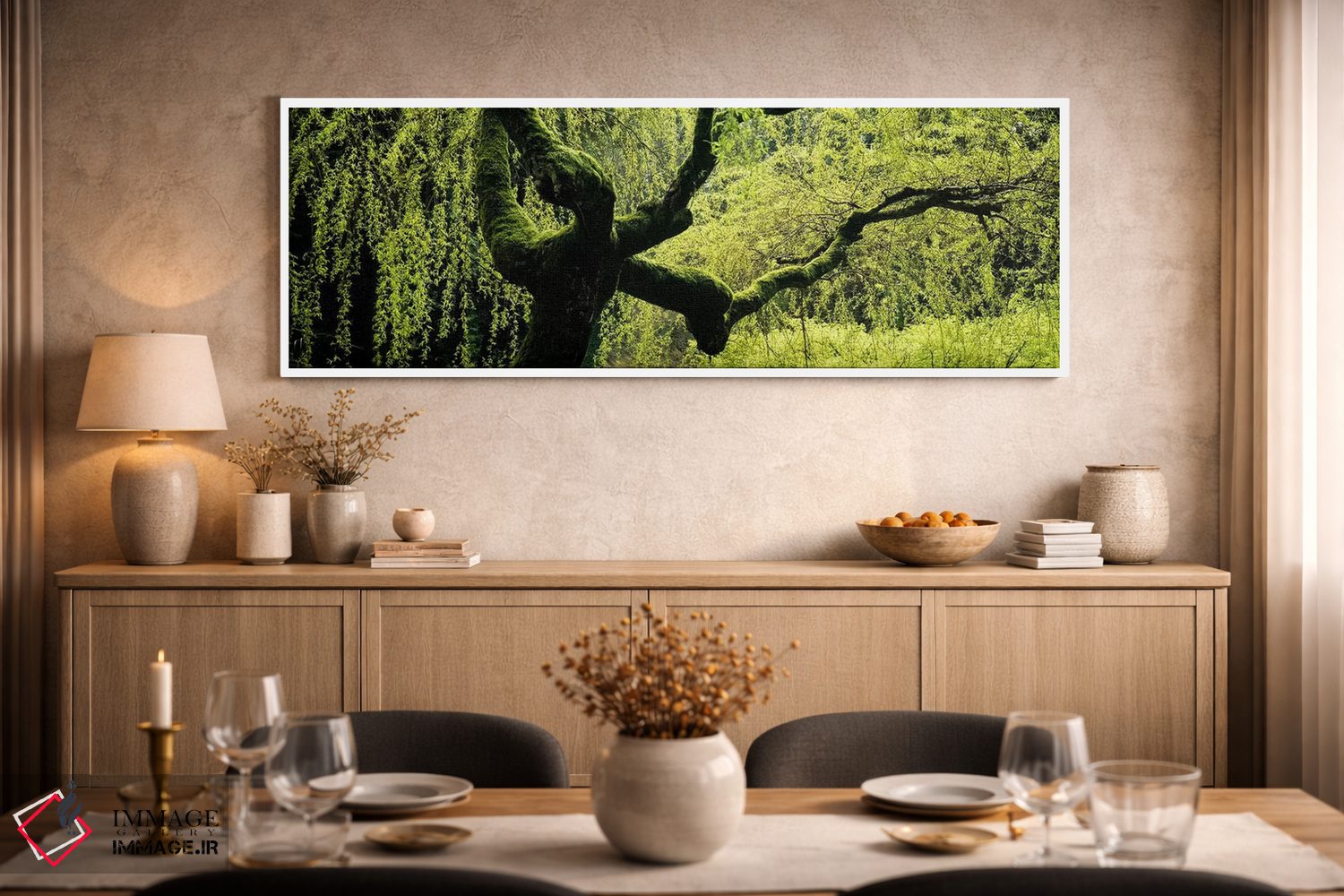 اگر میخواهید اثر برجستهتر شود، سبز را در یک شیء سرامیکی/فلزی جا بدهید تا رنگها طبیعیتر در فضا پخش شوند. انتخاب قاب هم میتواند این اکسنت را تقویت کند.