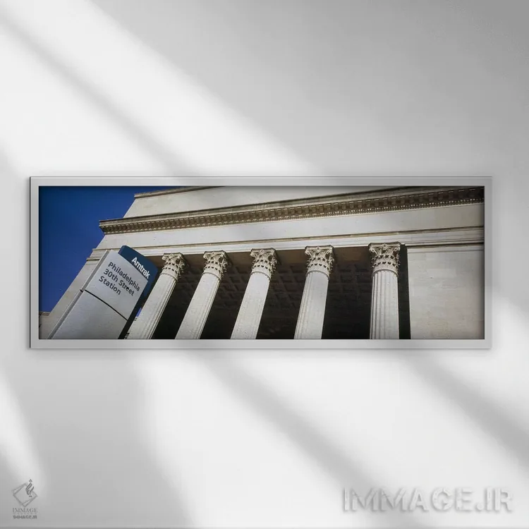 «30th Street Station، Philadelphia، Pennsylvania، USA، نمای پایین یک ساختمان، ایستگاه خیابان ۳۰، فیلادلفیا، پنسیلوانیا، آمریکا» اثرِ «پانورامیک ایمجز (استودیو عکاسی عریض)» میتواند پرسپکتیو و خطوط را به مرکز توجه تبدیل کند؛ برای لابی و فضاهای رسمی پیشنهاد شود. جزئیاتش از نزدیک هم خواناست و خوشپرداخت.