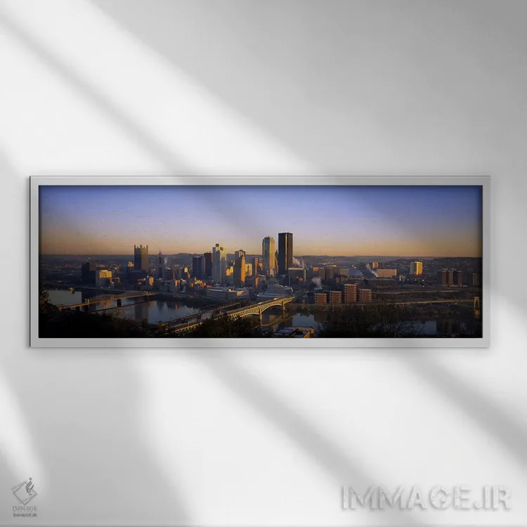 در این اثر، «Pennsylvania، USA، ساختمانها در شهر هنگام سپیدهدم، پیتسبورگ، پنسیلوانیا، آمریکا» اثرِ «پانورامیک ایمجز (استودیو عکاسی عریض)» روی دیوار، تمیز و دقیق دیده میشود؛ برای دیوار بالای کنسول یا شومینه پیشنهاد میشود. با مبلمان خنثی، تضاد دلنشینی میسازد.