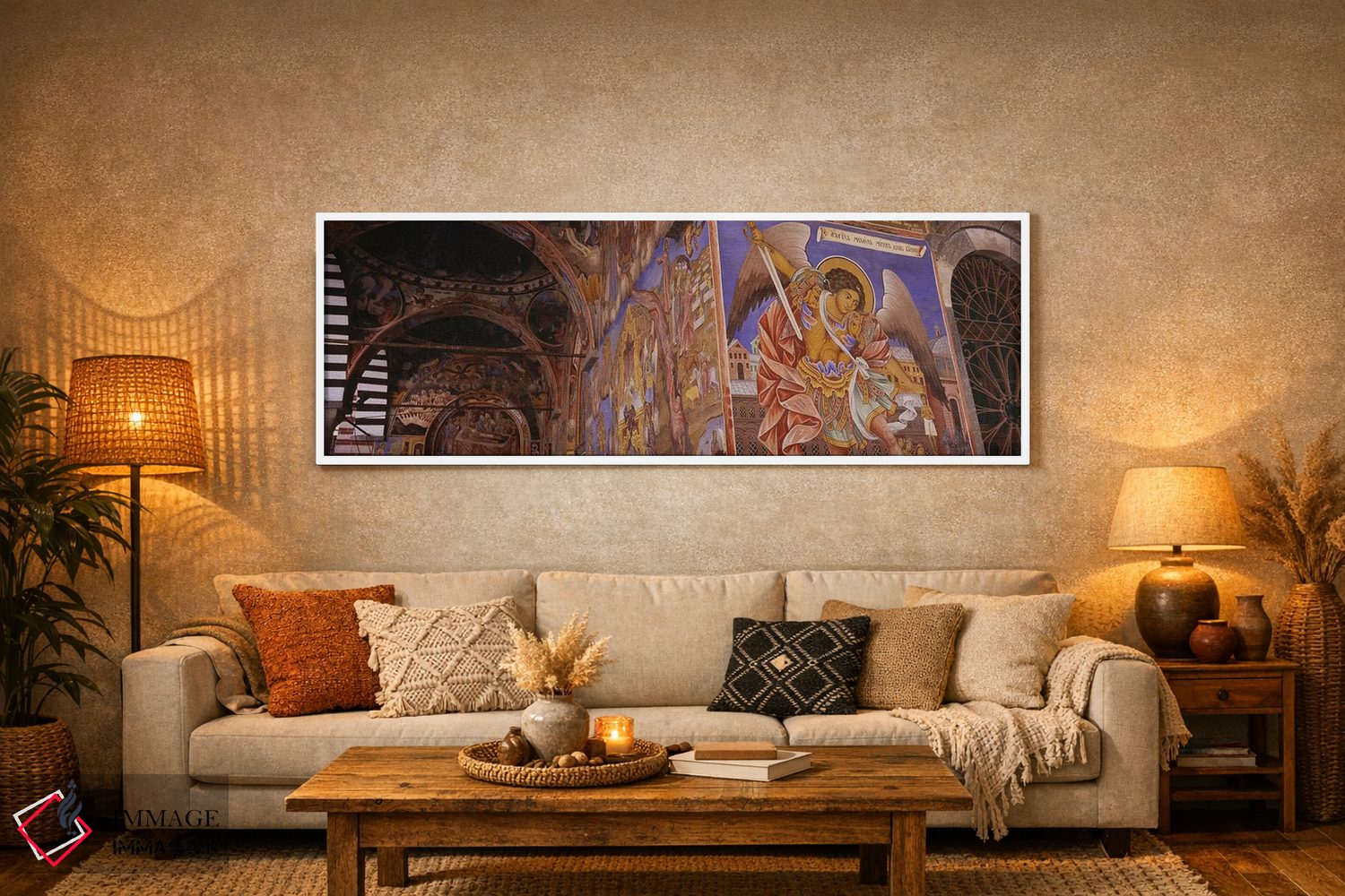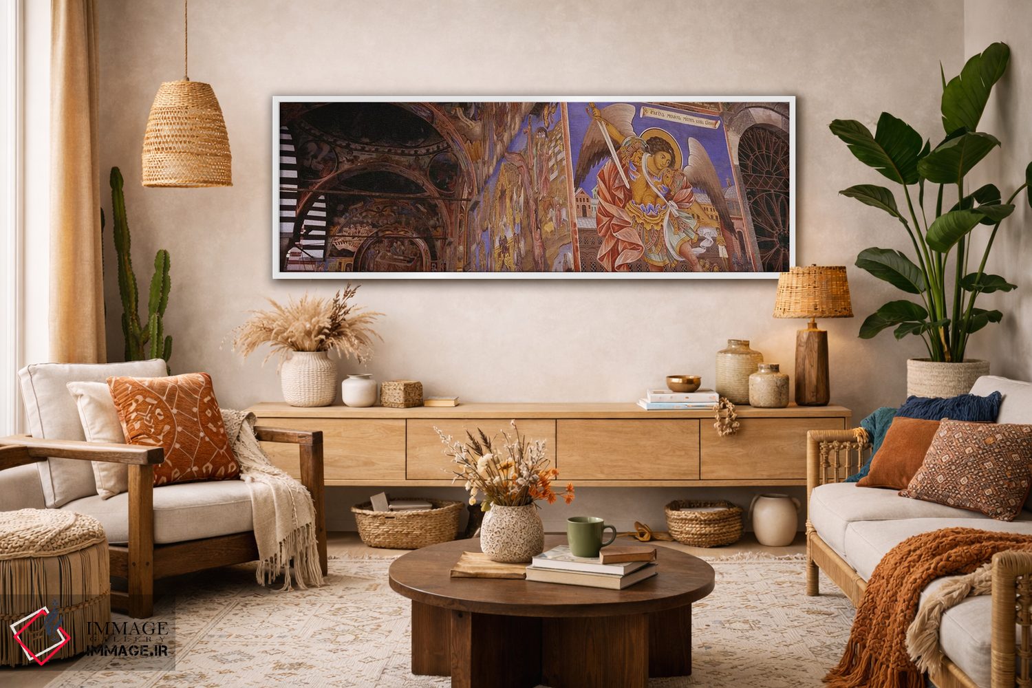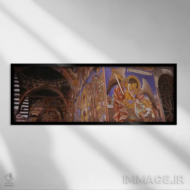 «Rila Monastery، Bulgaria، نمای زاویه پایین از فرسکو بر دیوارهای صومعه، صومعه ریلا، بلغارستان» اثرِ «پانورامیک ایمجز (استودیو عکاسی عریض)» از آن انتخابهاییست که جلوهٔ اتاق را یک پله حرفهایتر میکند؛ برای اتاق خوابهای آرام و روشن انتخابی عالی است. برای ترکیب با چوب، سنگ یا فلز، انتخابی دقیق است.