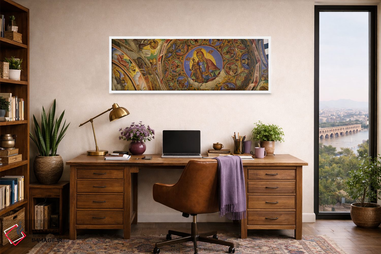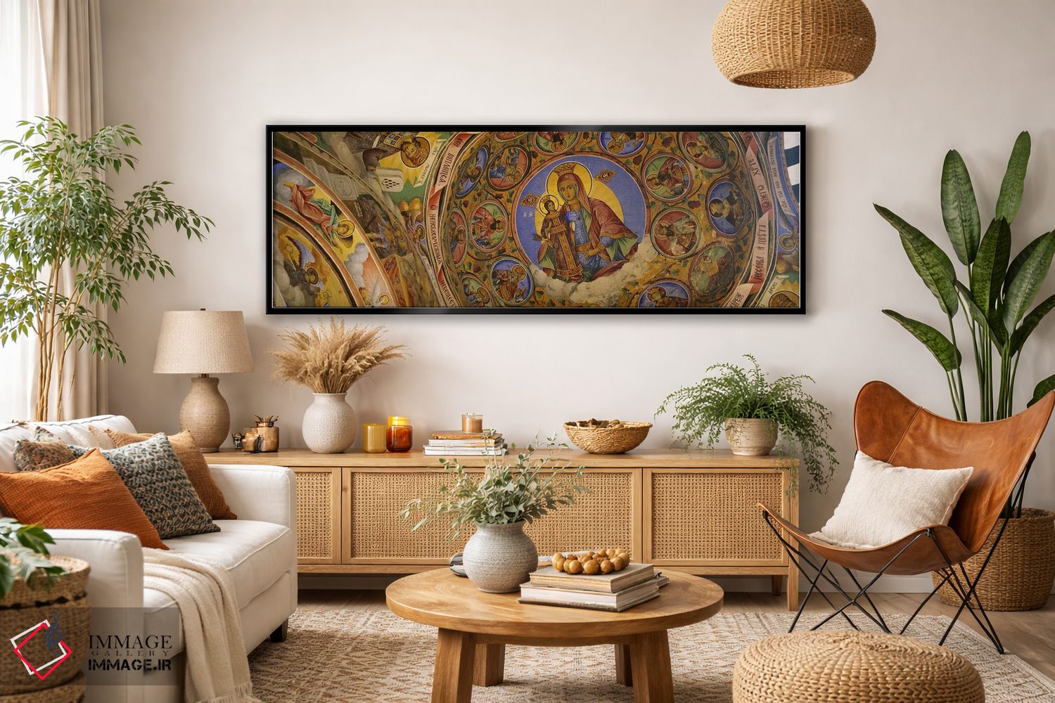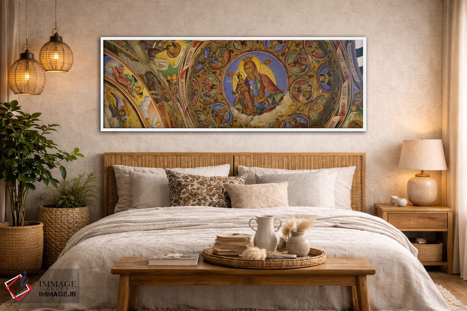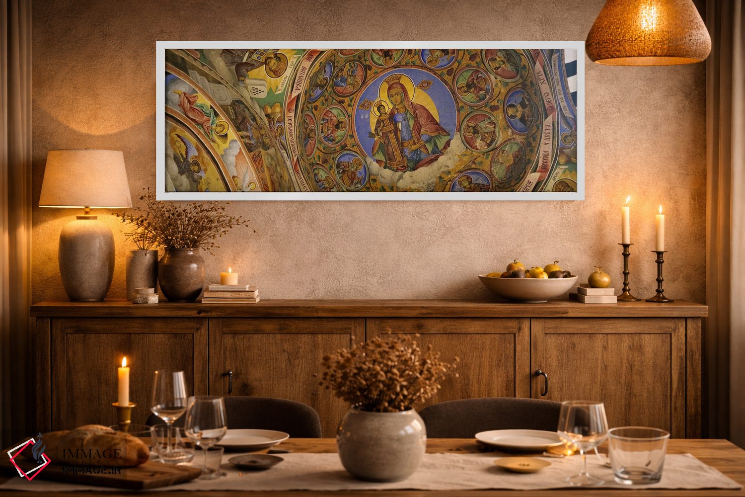 در نگاه اول، «Rila Monastery، Bulgaria، نمای زاویه پایین از فرسکو بر سقف صومعه، صومعه ریلا، بلغارستان» اثرِ «پانورامیک ایمجز (استودیو عکاسی عریض)» به فضا، روایت ملایم و قابل لمس میدهد؛ برای فضاهایی با نور طبیعی پیشنهاد میشود. هم از دور چشمگیر است و هم از نزدیک پرداخت دارد.