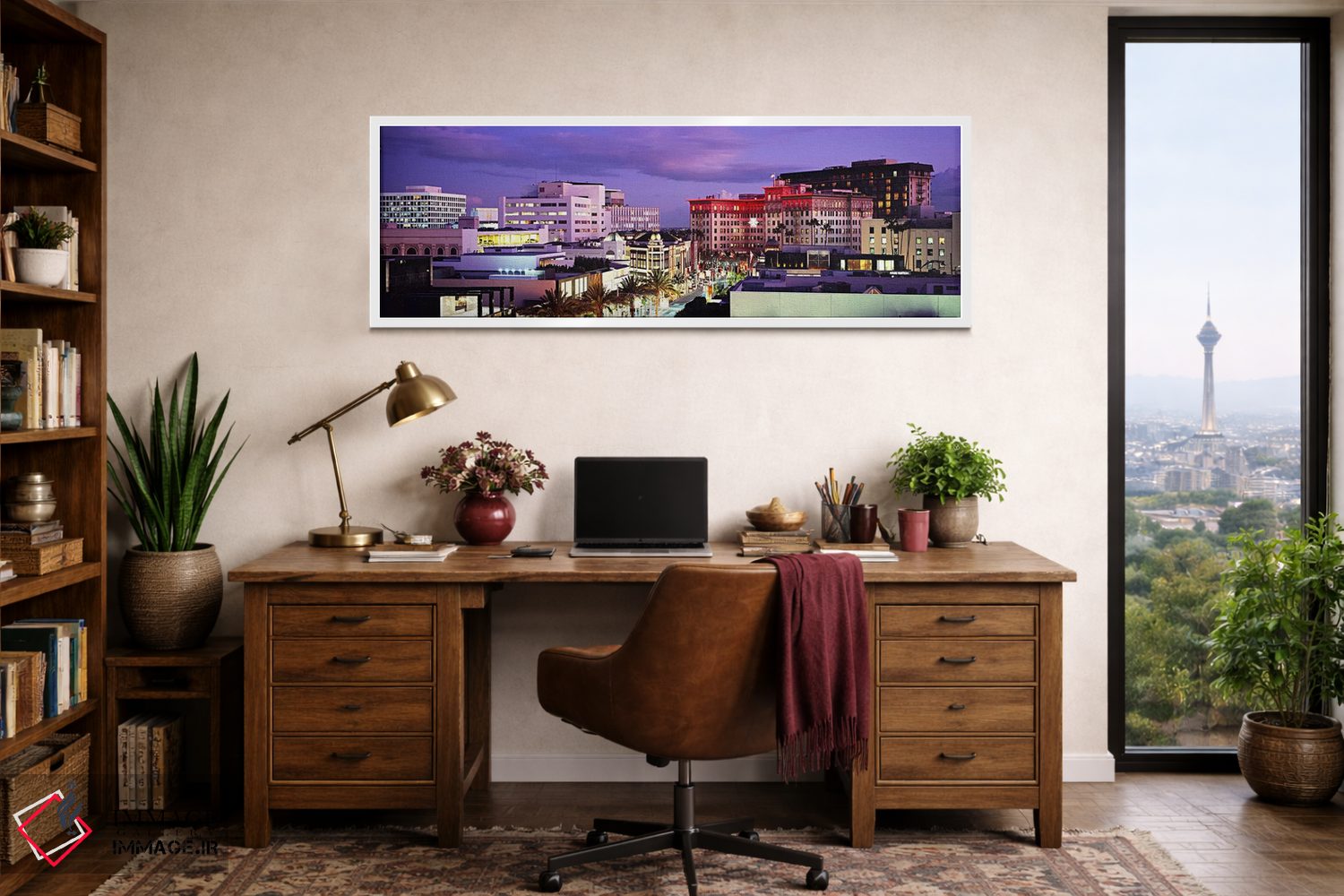 وقتی چیدمان را با دقت میچینید، «Rodeo Drive، Beverly Hills، California، USA، نمای شامگاهی، رودئو درایو، بورلی هیلز، کالیفرنیا، آمریکا» اثرِ «پانورامیک ایمجز (استودیو عکاسی عریض)» به دیوار، شخصیت و جهت میدهد؛ برای اتاق کار و گوشهٔ مطالعه پیشنهاد میشود. برای ترکیب با چوب، سنگ یا فلز، انتخابی دقیق است.