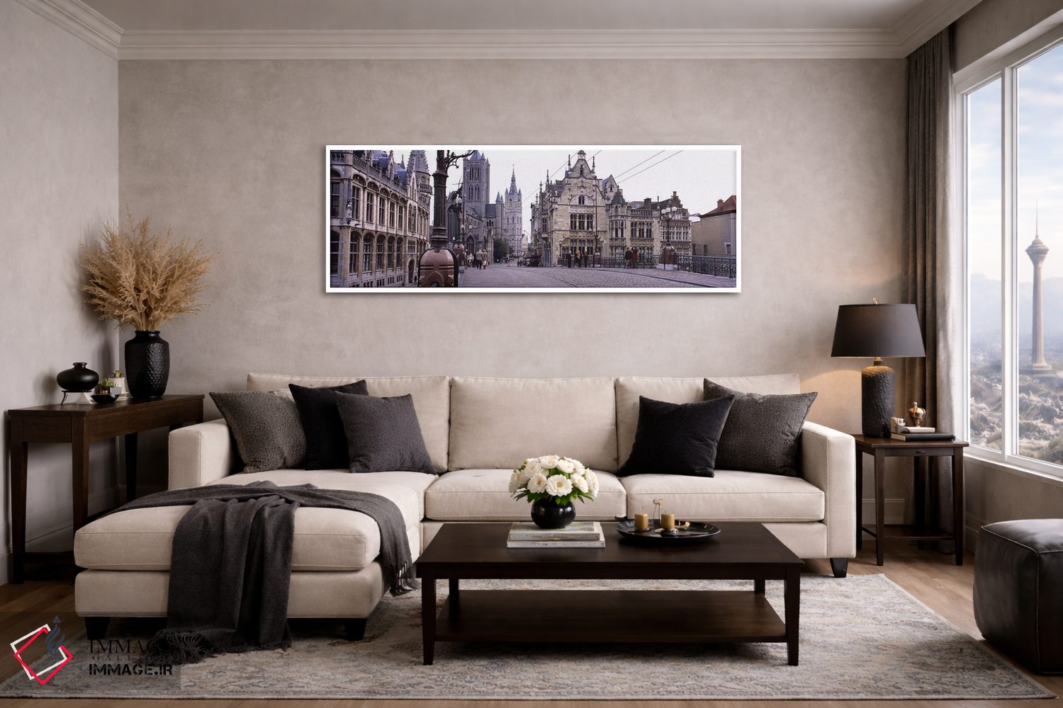 برای خانههایی که به زیباییِ آرام علاقه دارند، «St. Nicolas Church، Ghent، Belgium، گردشگران در حال قدمزدن مقابل کلیسای سنت نیکولاس، خنت، بلژیک» اثرِ «پانورامیک ایمجز (استودیو عکاسی عریض)» جلوهٔ اتاق را یک پله حرفهایتر میکند؛ برای فضاهای مدرن با خطوط ساده پیشنهاد میشود. در کنار قاب مناسب، جلوهٔ کار چند برابر میشود.