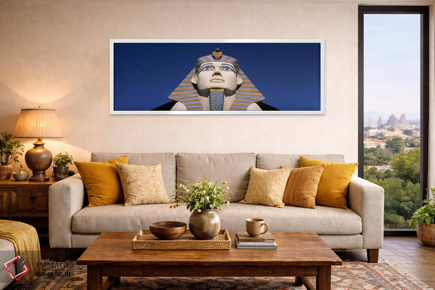 «Luxor Hotel Sphinx، Las Vegas، Nevada، USA، نمای زاویه پایین از ابوالهول—هتل لوکسور، لاس وگاس، نوادا» اثرِ «پانورامیک ایمجز (استودیو عکاسی عریض)» یک اثر خوشریتم است: نگاه را آرام هدایت میکند و به فضا شخصیت میدهد.