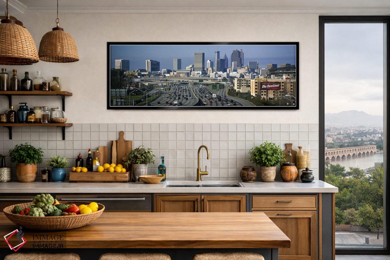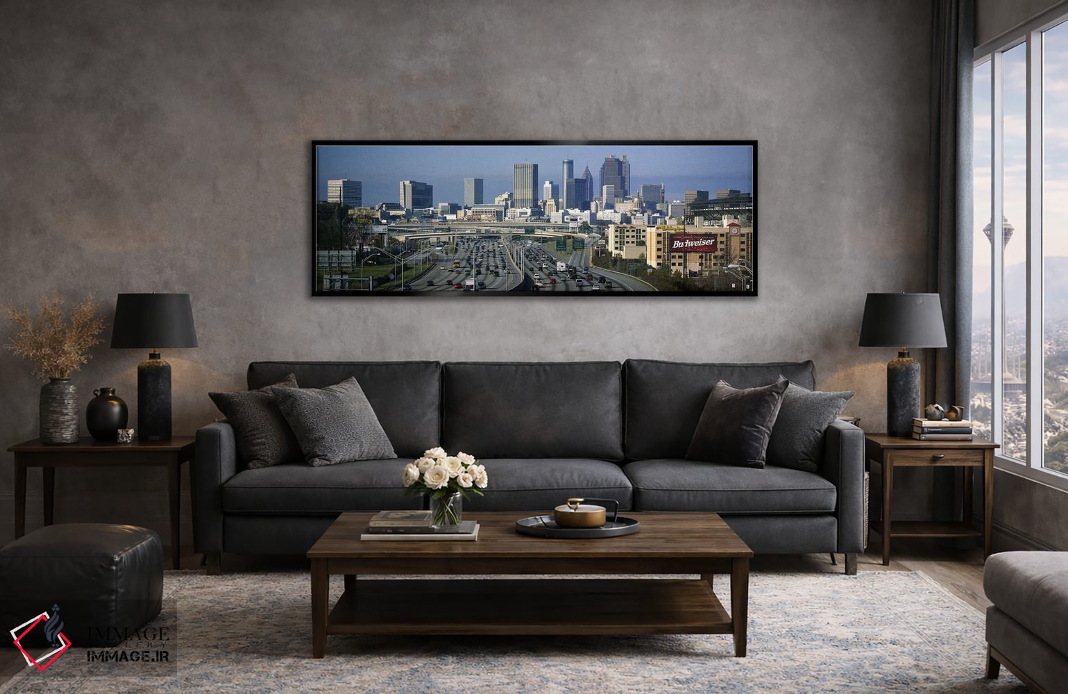 «Atlanta، Georgia، USA، نمای بالا از ترافیک بزرگراه، آتلانتا، جورجیا، آمریکا» اثرِ «پانورامیک ایمجز (استودیو عکاسی عریض)» با حالوهوای تزئینیِ این اثر، فضا را روشن و مرتب میکند؛ مناسب نشیمنهای روشن و چیدمانهای مدرن.