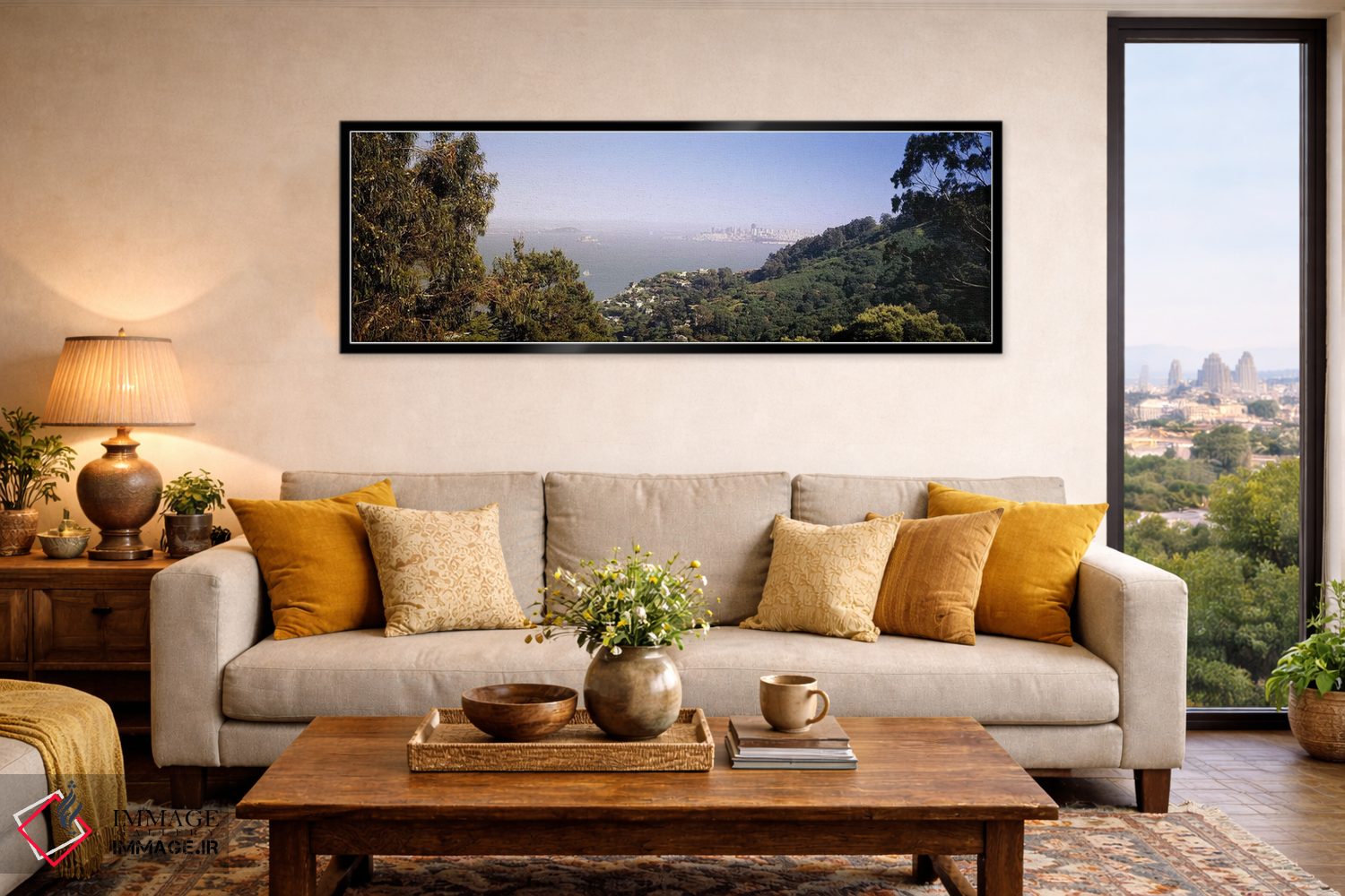 براساس پالت ترکیبی اثر، قاب بلوط روشن (چوبی) پیشنهاد اول است و استخوانی ملایم مکمل. برای سفارشهای پروژهای با ابعاد و قابهای اختصاصی با ایماژ در تماس باشید.