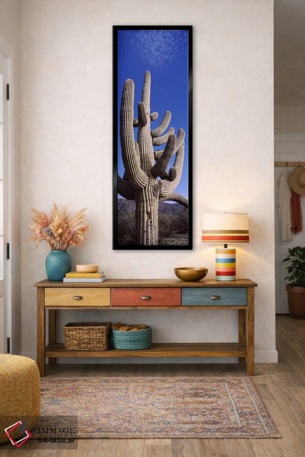 این تابلو با عنوان «Saguaro National Park، Tucson، Arizona، USA، نمای روبهپایین یک کاکتوس ساگوارو (کارنژیا گیگانتهآ) در چشمانداز، پارک ملی ساگوارو، توسان، آریزونا، ایالات متحده آمریکا» اثرِ «پانورامیک ایمجز (استودیو عکاسی عریض)» جلوهٔ رنگها را طبیعیتر و متعادلتر نشان میدهد؛ برای راهروها و ورودیهای مینیمال پیشنهاد میشود. فضا را شلوغ نمیکند؛ فقط دقیقترش میکند.