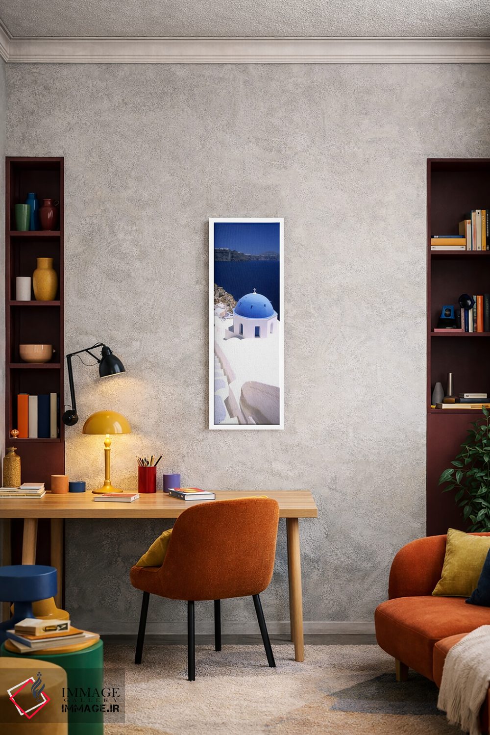«Oia، Santorini، Cyclades Islands، Greece، نمای بالا از کلیسایی با گنبد آبی، اویا، سانتورینی، جزایر سیکلادس، یونان» اثرِ «پانورامیک ایمجز (استودیو عکاسی عریض)» از آن انتخابهاییست که روی دیوار، تمیز و دقیق دیده میشود؛ برای دکورهای کلاسیک با چوب و پارچه انتخابی عالی است. با نور گرم یا سرد، خوانایی و وقارش را حفظ میکند.