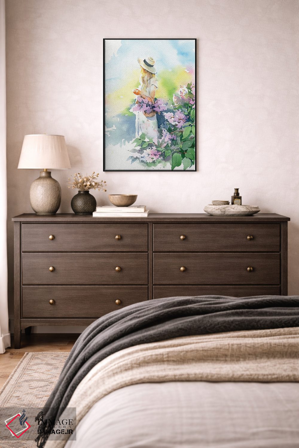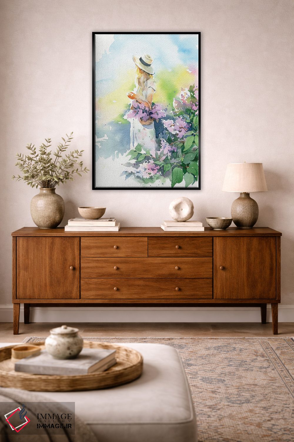 «دختر با گل یاس بنفش» اثرِ «مارینا ایگناتووا» میتواند به دیوار، روشناییِ ملایم و دلنشین بدهد؛ برای نشیمنهای روشن پیشنهاد میشود. همیشه بهروز میماند و با فصلها خوب کنار میآید.