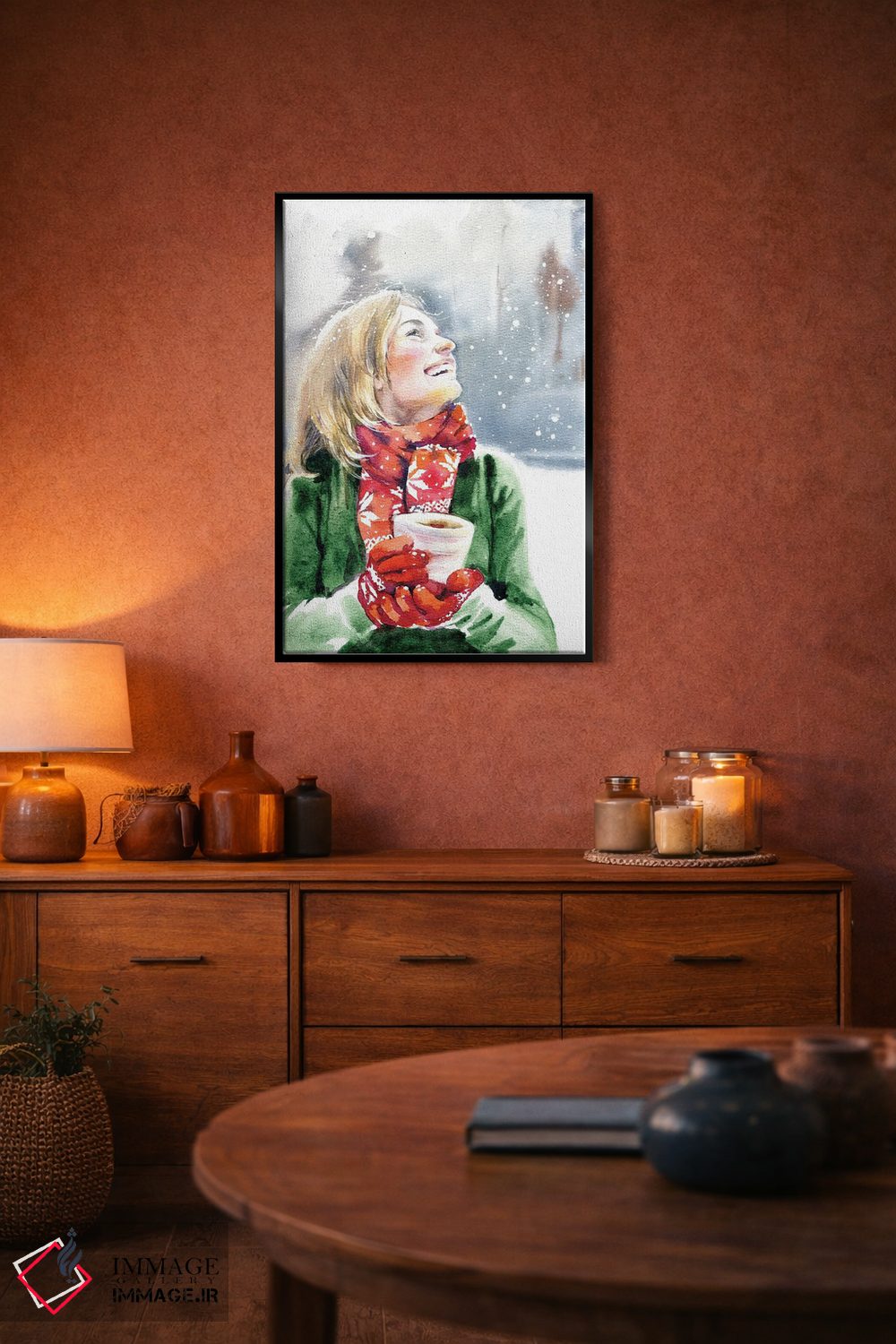 براساس پالت ترکیبی اثر، قاب تیک گرم (چوبی) پیشنهاد اول است و مشکی مات (فریم متوسط) مکمل. برای سفارشهای پروژهای با ابعاد و قابهای اختصاصی با ایماژ در تماس باشید.