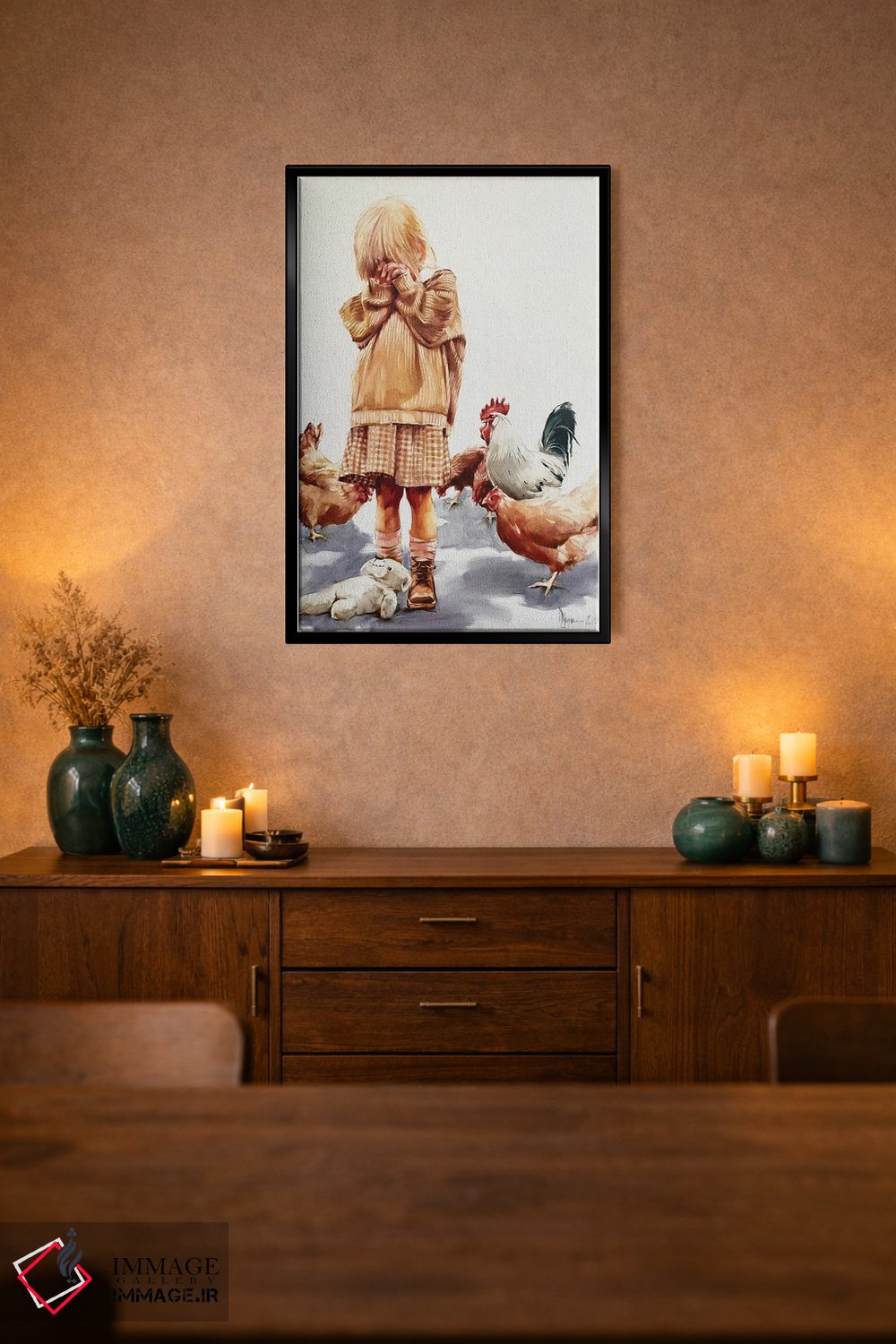 براساس پالت گرم اثر، قاب تیک گرم (چوبی) پیشنهاد اول است و مشکی مات (فریم متوسط) مکمل. برای سفارشهای پروژهای با ابعاد و قابهای اختصاصی با ایماژ در تماس باشید.