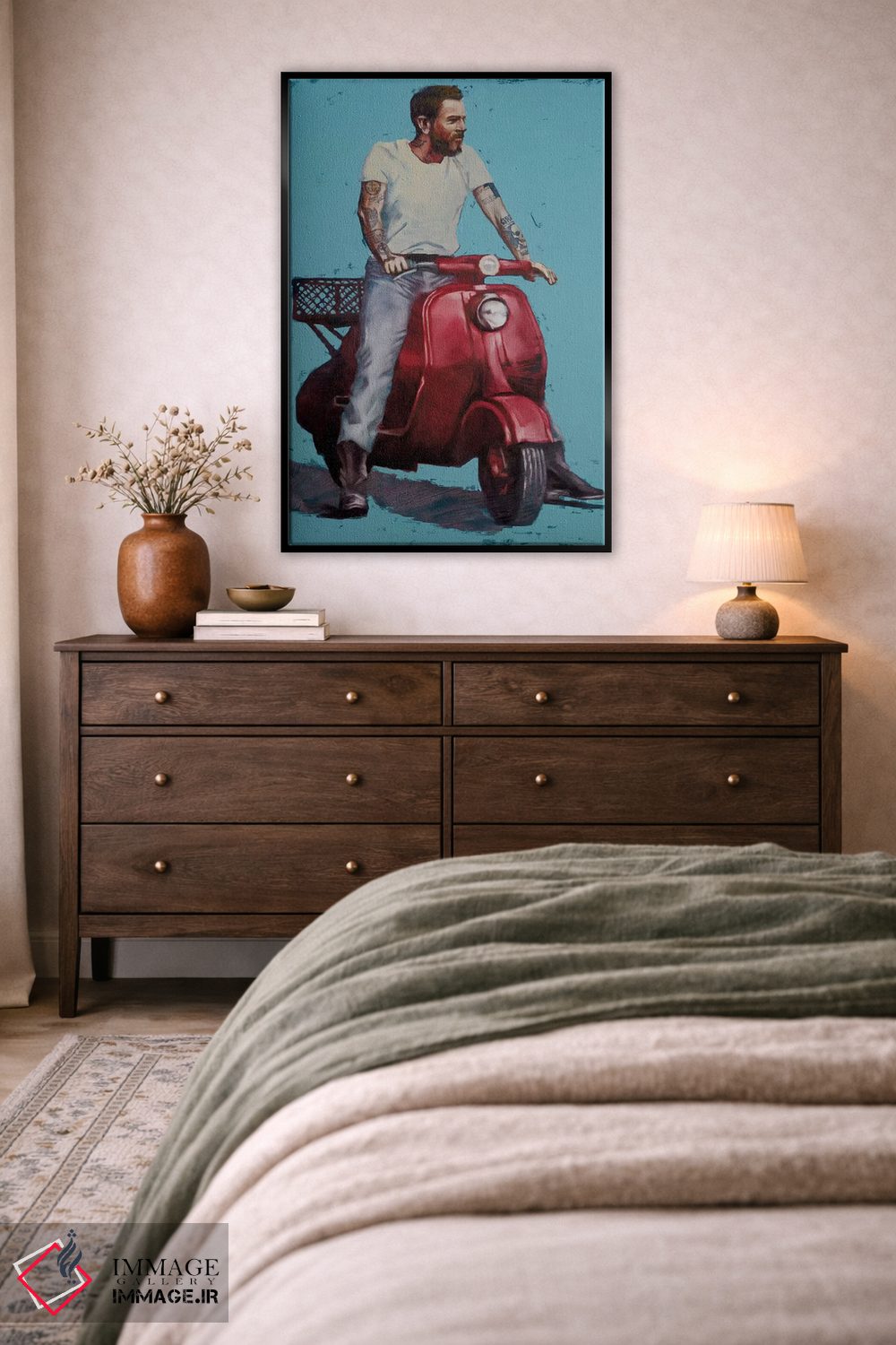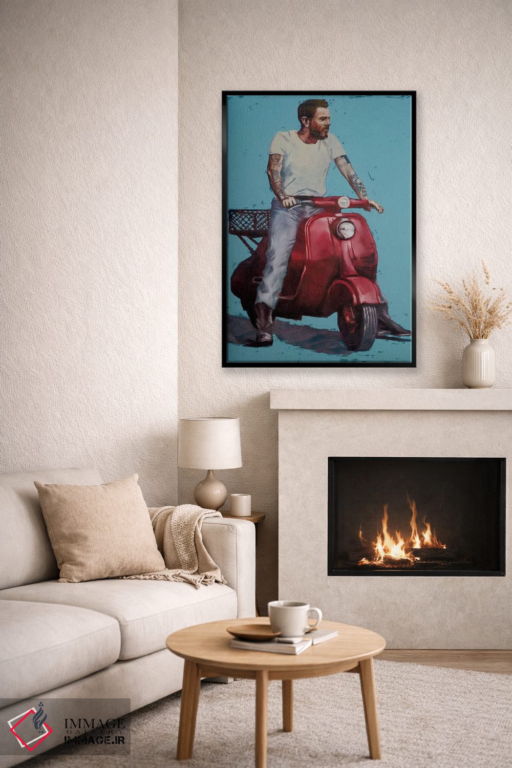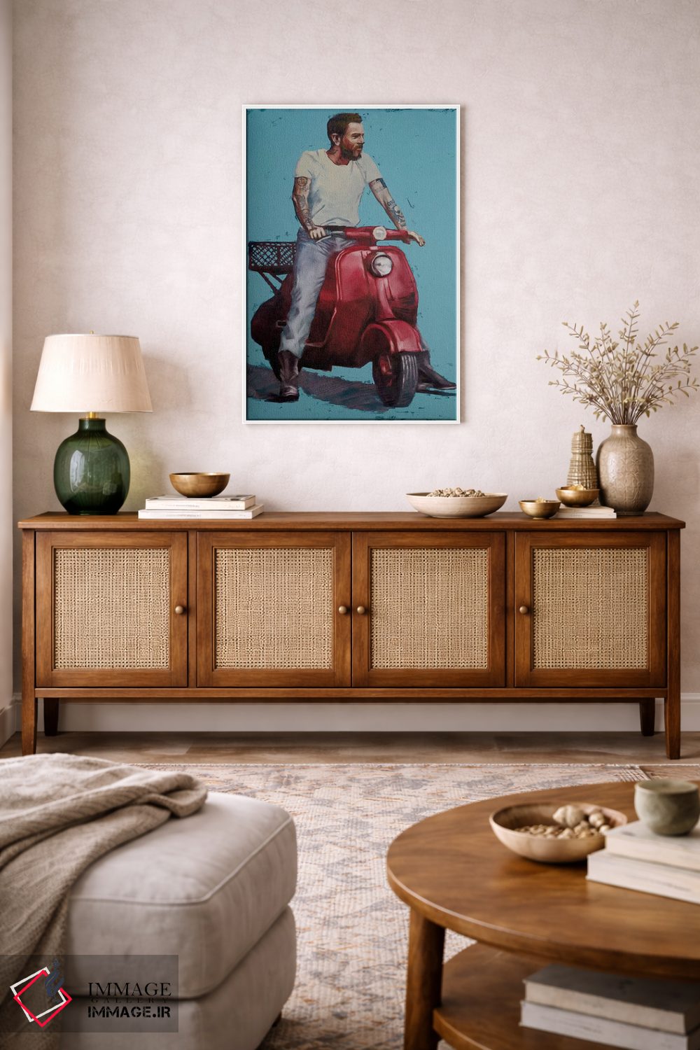 براساس پالت ترکیبی اثر، قاب تیک گرم (چوبی) پیشنهاد اول است و مشکی مات (فریم متوسط) مکمل. برای سفارشهای پروژهای با ابعاد و قابهای اختصاصی با ایماژ در تماس باشید.