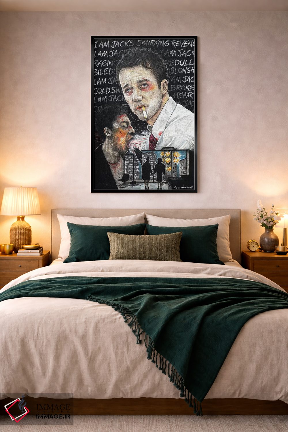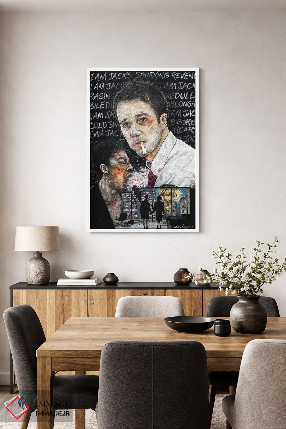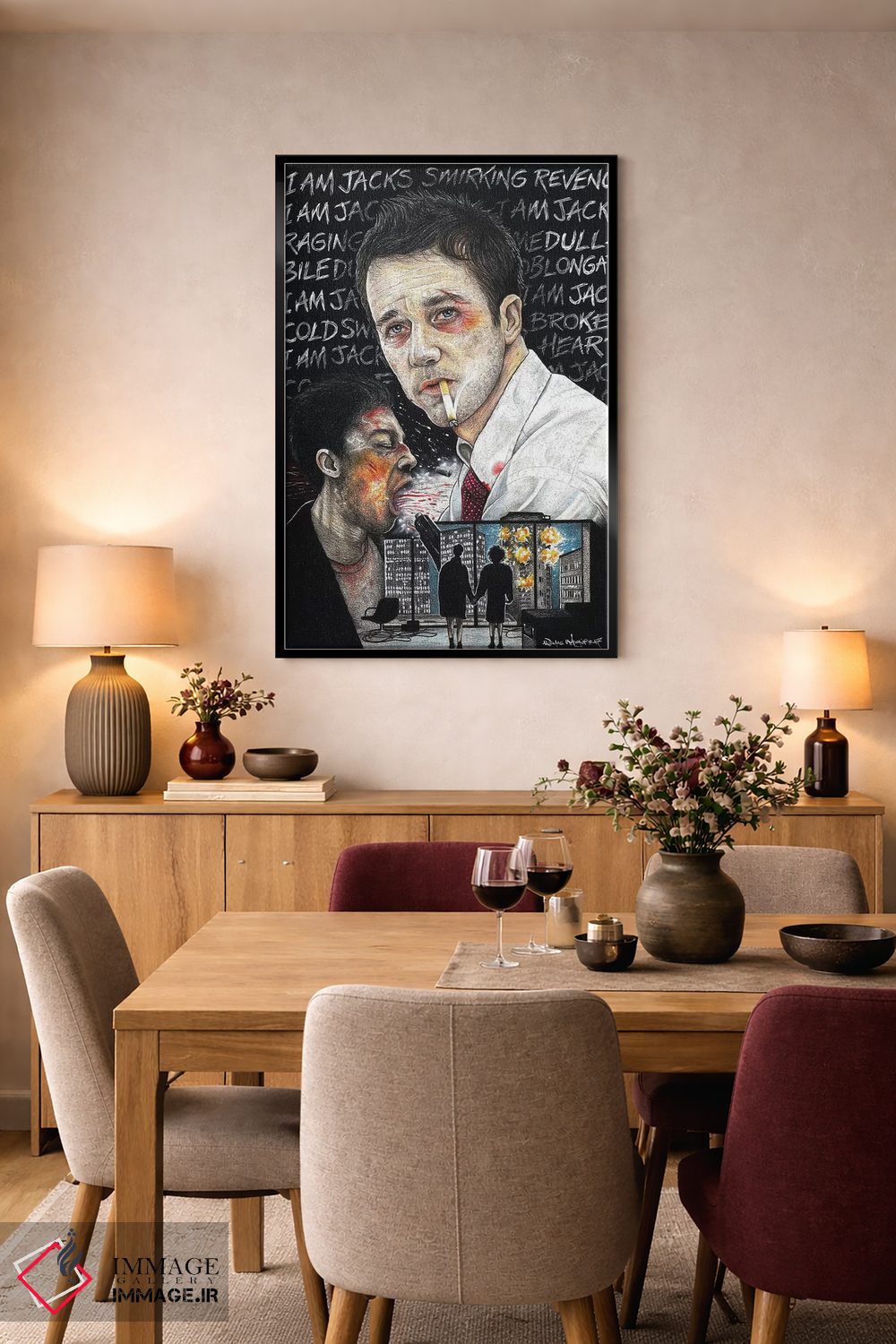 برای سلیقههایی که به جزئیات احترام میگذارند، «باشگاه مبارزه I» اثرِ «اینکد آیکونز (استودیو هنری)» سلیقهٔ صاحبخانه را بیاغراق نشان میدهد؛ برای فضاهای کمنور که به «نقطهٔ روشن» نیاز دارند پیشنهاد میشود. به فضا حس «گالری خانگی» میدهد، بدون اینکه اغراق کند.