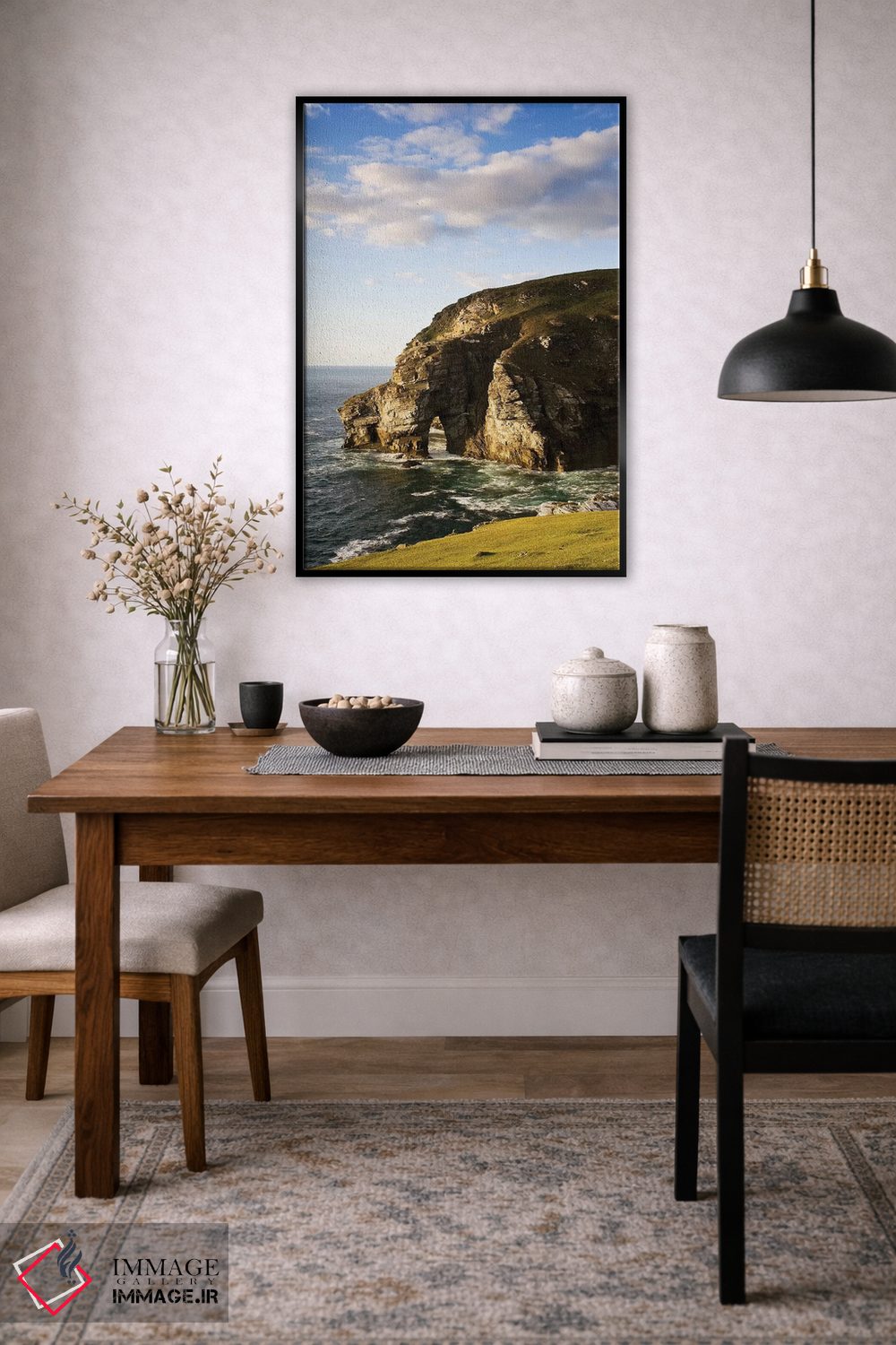 تابلو دکوراتیو دانفاناگی، شهرستان دانیگال، ایرلند؛ صخره دریایی ساحل… اثر ایریش ایمیج کالکشن - نمای قاب‌دار مشکی