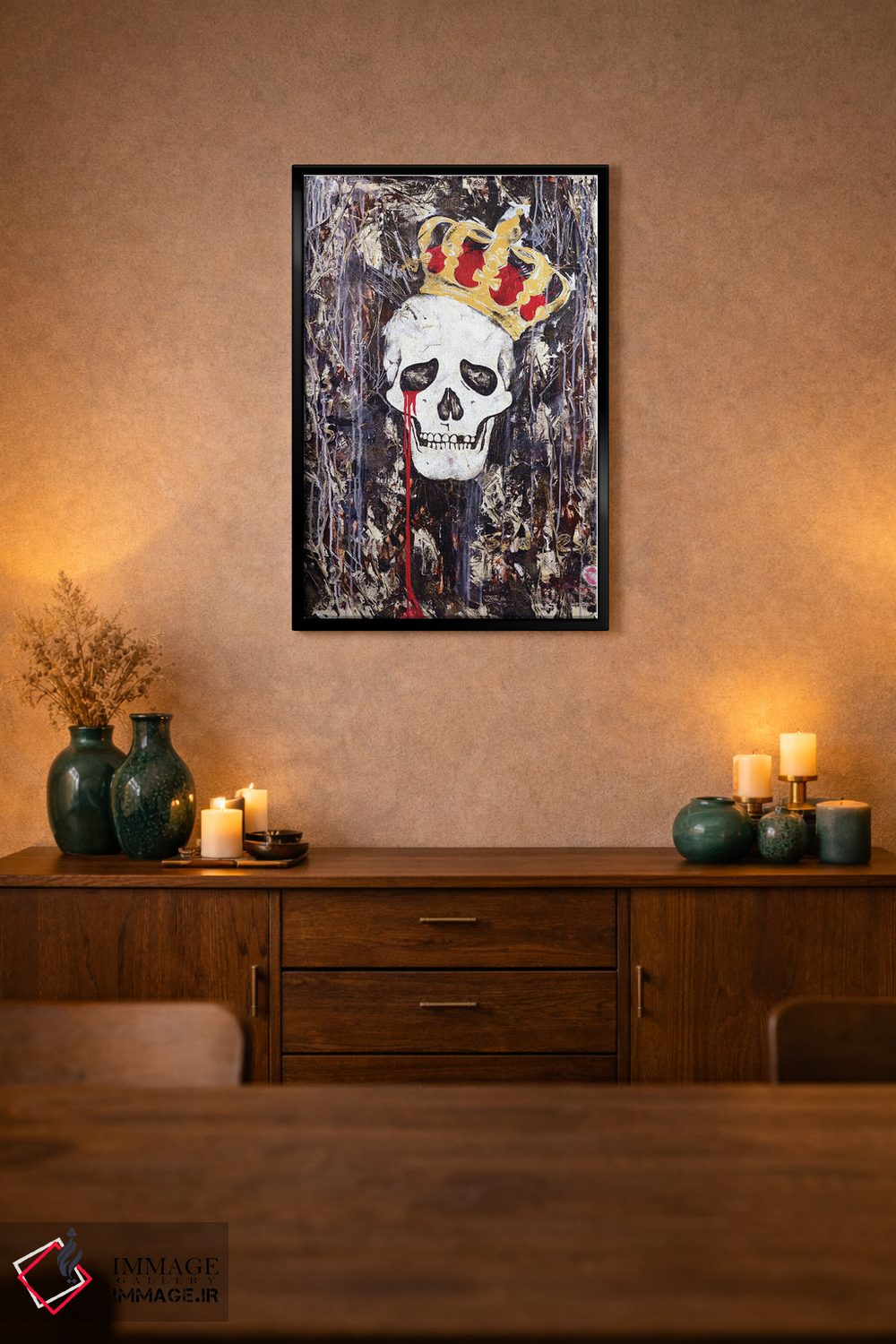 براساس پالت گرم اثر، قاب تیک گرم (چوبی) پیشنهاد اول است و مشکی مات (فریم متوسط) مکمل. برای سفارشهای پروژهای با ابعاد و قابهای اختصاصی با ایماژ در تماس باشید.