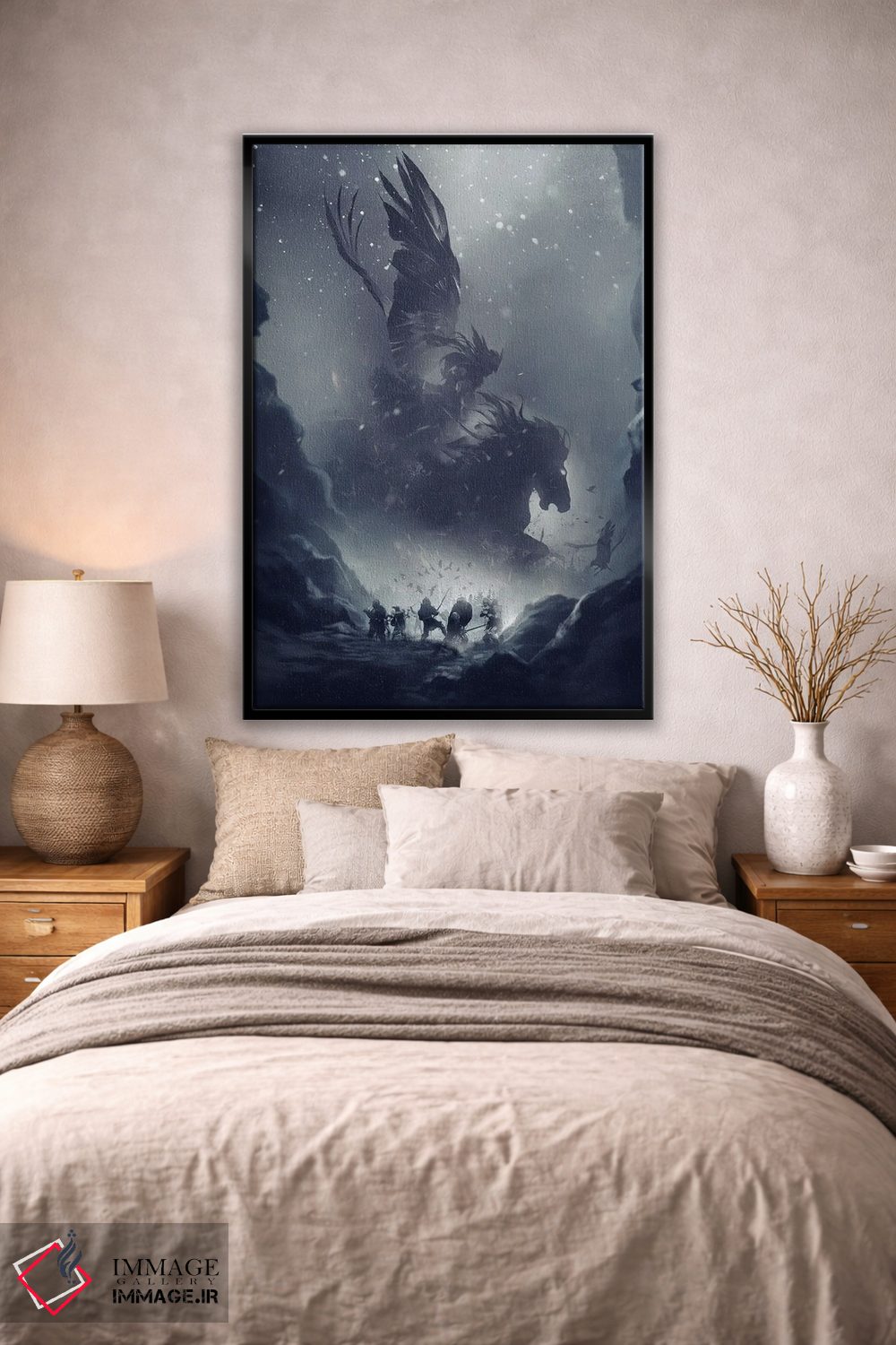 بوم گالری ایماژ نسخهی چیدماناتیوِ باکیفیت از یک اثر هنری است. روی کنواس بدون اسید با بافت ظریف و یکنواخت با چاپ هنری به استاندارد جیکلی (Giclée) با سیستم رنگ Epson UltraChrome HDR برای نیمسایههای نرمتر و سایههای جزئیتر؛ نتیجه، تصویرسازیِ دقیقتر و حس ارائهی گالریوار است. اسمبل تمیز و آمادهی نصب؛ کشیدگی استاندارد روی کلاف و یراق مناسب.