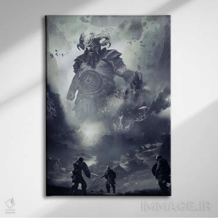 تابلو دکوراتیوِ «به چالش کشیدن یوتونها (غولان نورس)» با حالوهوای این اثر؛ مناسب برای فضاهای مدرن، مینیمال و حتی صنعتی اثرِ «ایکارونا (برند هنری/استودیو)».
