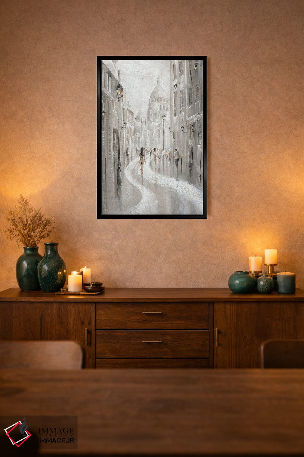 بوم گالری ایماژ طوری طراحی شده که اثر روی دیوار «پرداختشده» و حرفهای دیده شود—نه پرزرقوبرقِ بیپایه؛ بلکه دقیق و خوشپرداخت. بافت ظریف کنواس کمک میکند حس اثر هنری را در نگاه نزدیک نگه میدارد بهخصوص وقتی نور موضعی ملایم داشته باشید. چاپ جیکلی (Giclée) کمک میکند گذارهای رنگی را نرمتر میکند. در نهایت، نتیجه چیزی شبیه تفاوت نسخهی معمولی با نسخهی باکیفیتتر است: نه رنگِ بیشتر، بلکه پرداخت بهتر؛ در کنار نورپردازی درست، جلوهی گالریوار بیشتری حس میشود.