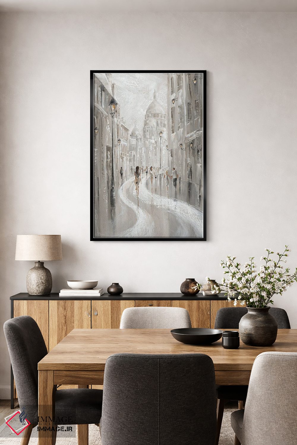براساس پالت خنثی اثر، قاب مشکی مات (فریم باریک) پیشنهاد اول است و سفید مات (فریم باریک) مکمل. برای سفارشهای پروژهای با ابعاد و قابهای اختصاصی با ایماژ در تماس باشید.