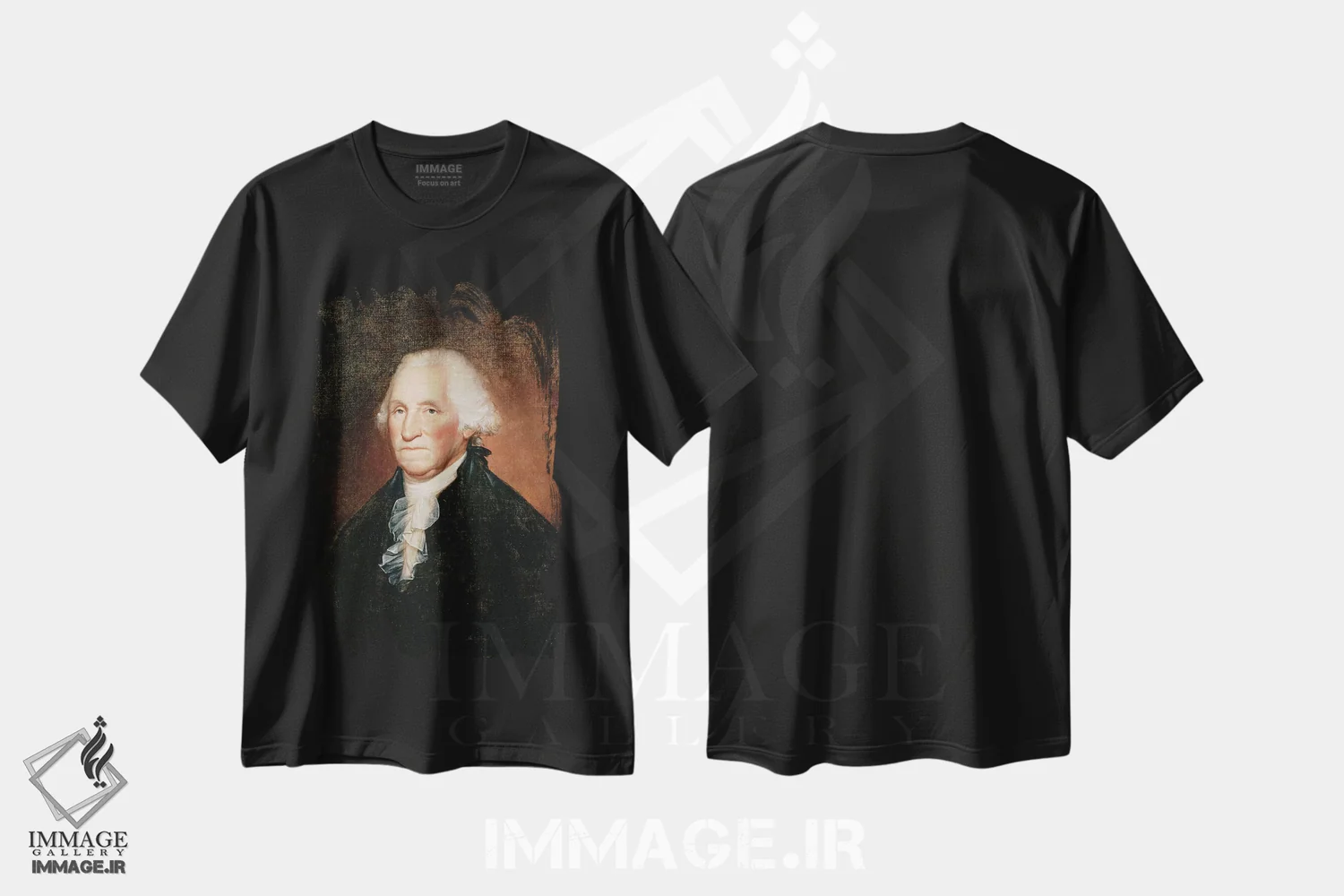 تیشرت مشکی طرح دار جرج واشنگتن، ۱۷۹۵، هنر فاخر کلاسیک اثر رمبراند پرتقال | immage.ir