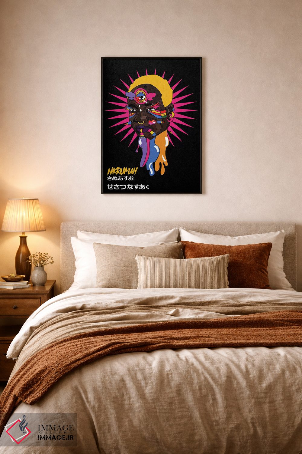در «انکرومه (کوآمه انکرومه، رهبر غنا)» اثرِ «ایندی لاو (برند هنری)»، تاکید بر هویت و بیان تصویری باعث میشود در چیدمانهای مدرن هم تاثیرگذار بماند.