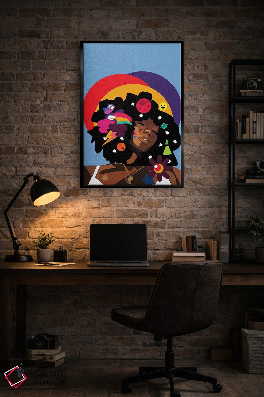 یک تابلو پاپ—محور که به دکور شخصیت و شوخطبعی کنترلشده میدهد اثرِ «ایندی لاو (برند هنری)».
