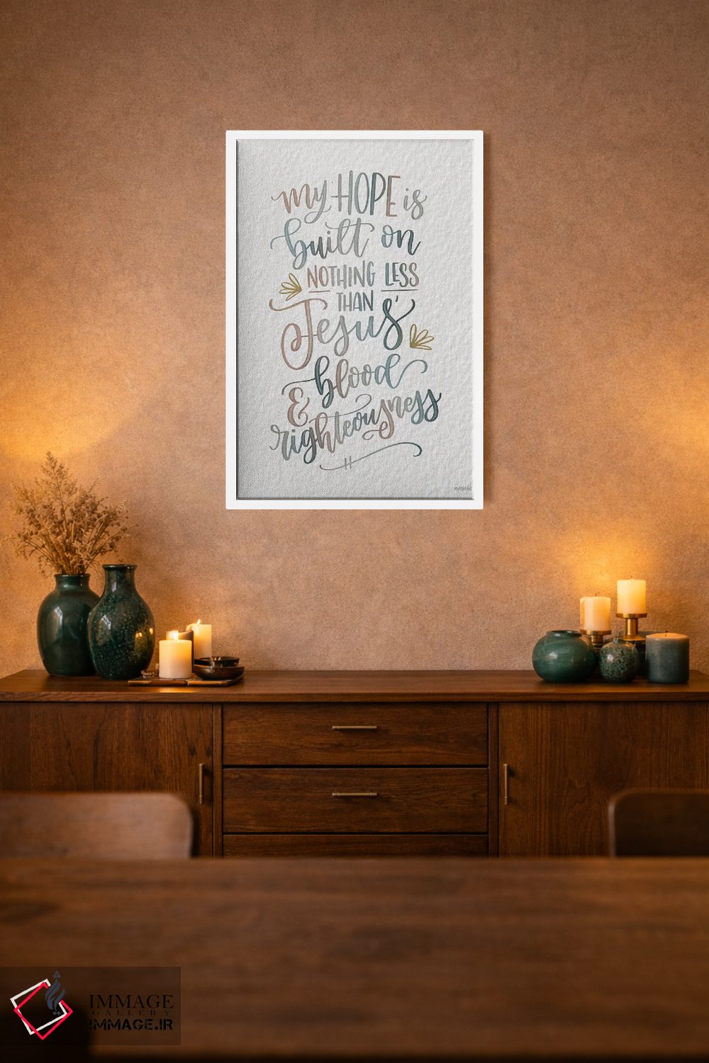 «امید من» اثرِ «ایمپرفکت داست (برند هنری)» یک قاب تایپوگرافیک است که ریتم فضا را منظم نگه میدارد؛ برای دیوارهای سفید و چیدمانهای ساده، گزینهی خوبی است.