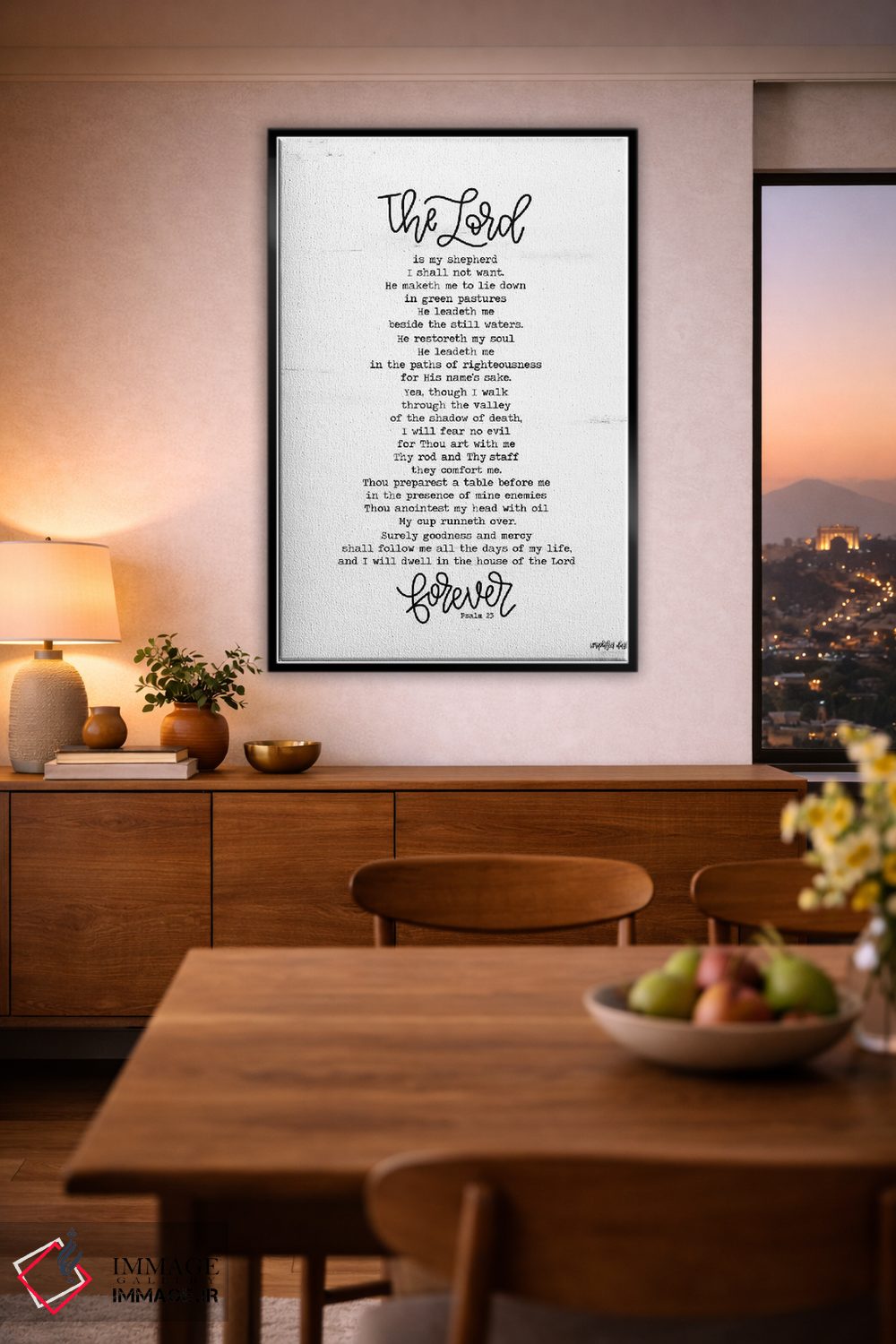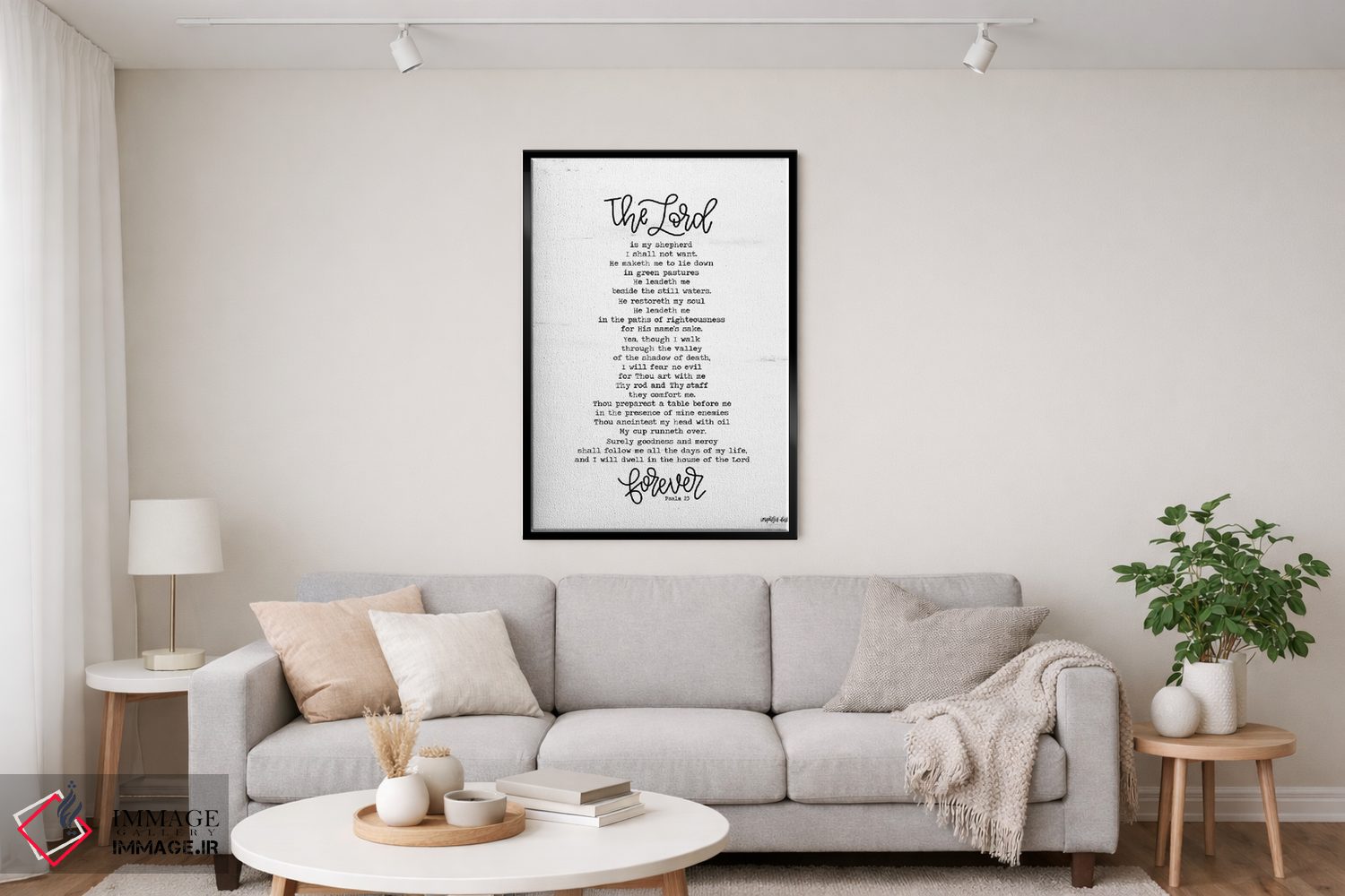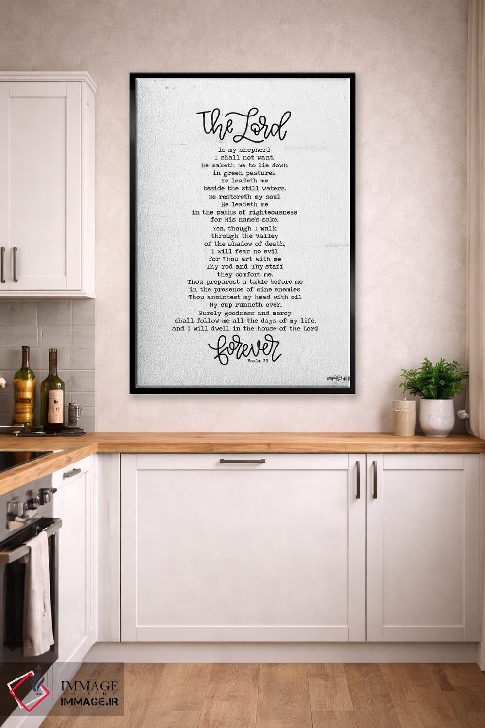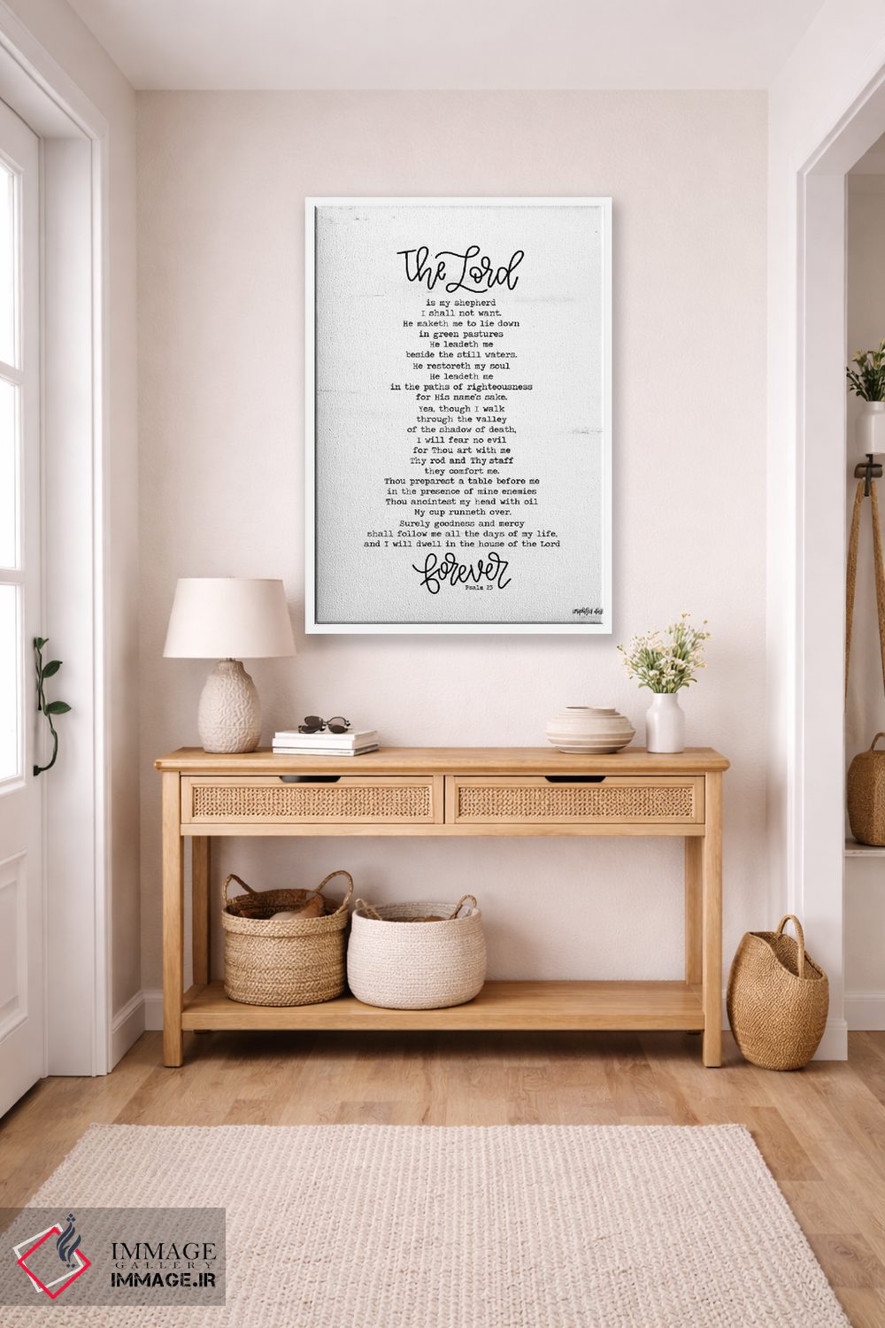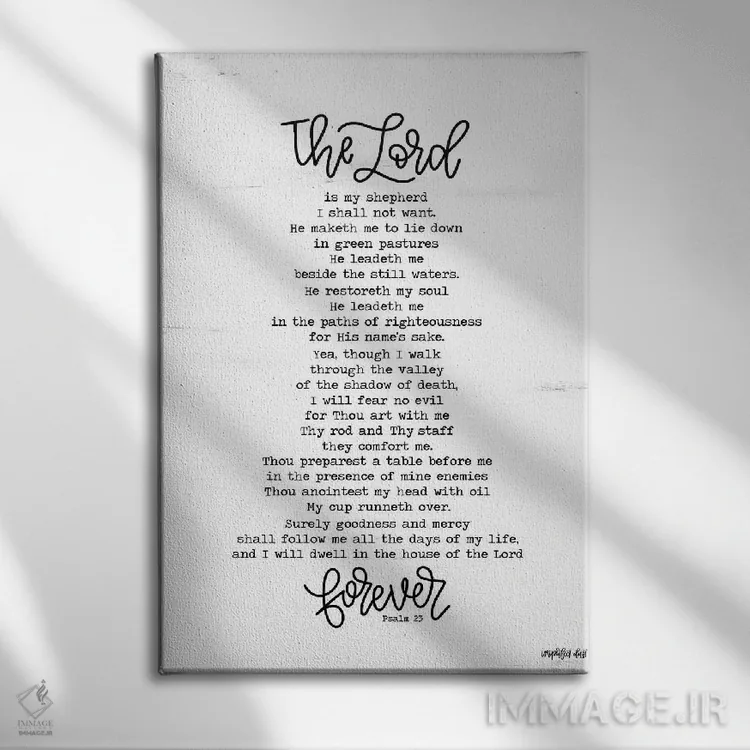 اگر پالت دکور شما خنثی است، هنری کمک میکند «مزمور ۲۳ (آیه انجیل)» اثرِ «ایمپرفکت داست (برند هنری)» با روایتی مینیمال و مرتب، نقطهٔ کانونی بسازد.