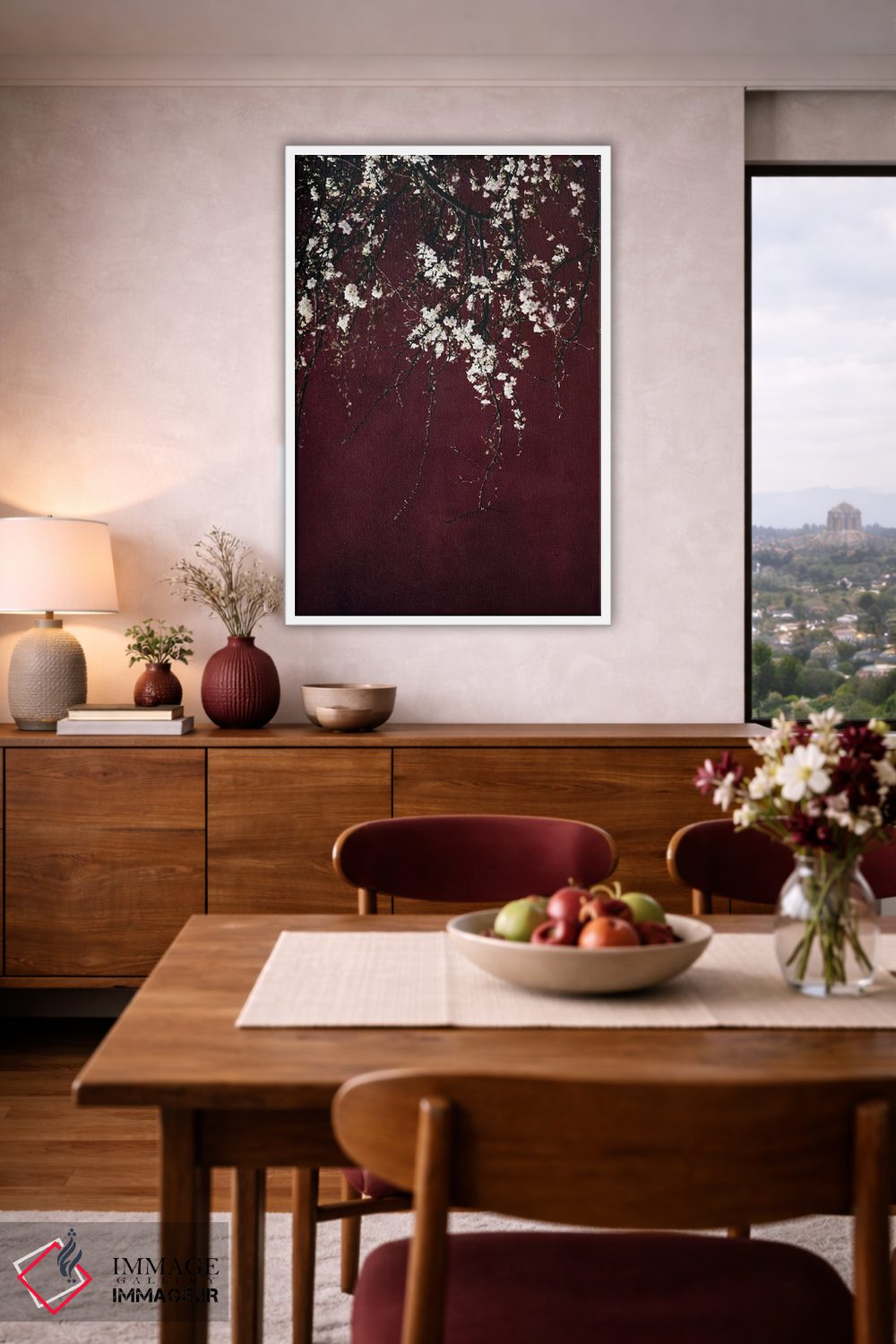 بوم گالری ایماژ نسخهی دکوراتیوِ سطحبالا از یک اثر هنری است؛ روی کنواس بدون اسید با بافت ظریف و یکنواخت با فرآیند چاپ حرفهای جیکلی (Giclée) و کنترل دقیق تونها با رنگدانههای آرشیوی و سیستم رنگ دقیق، روی دیوار، کار یکدستتر و خوشکیفیتتر دیده میشود. کلافکشی مرتب و یراق نصب استاندارد، تجربهی نصب را ساده میکند. برای قابهای متنوعتر و اندازه سفارشی، تیم ایماژ راهنماییتان میکند.