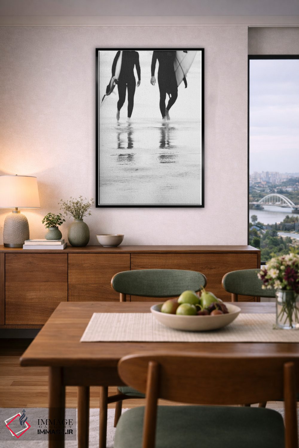 براساس پالت خنثی اثر، قاب مشکی مات (فریم باریک) پیشنهاد اول است و سفید مات (فریم باریک) مکمل. برای سفارشهای پروژهای با ابعاد و قابهای اختصاصی با ایماژ در تماس باشید.