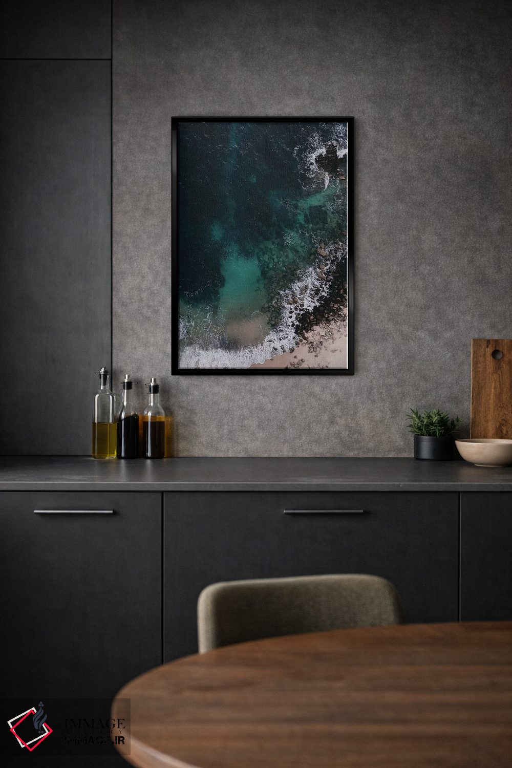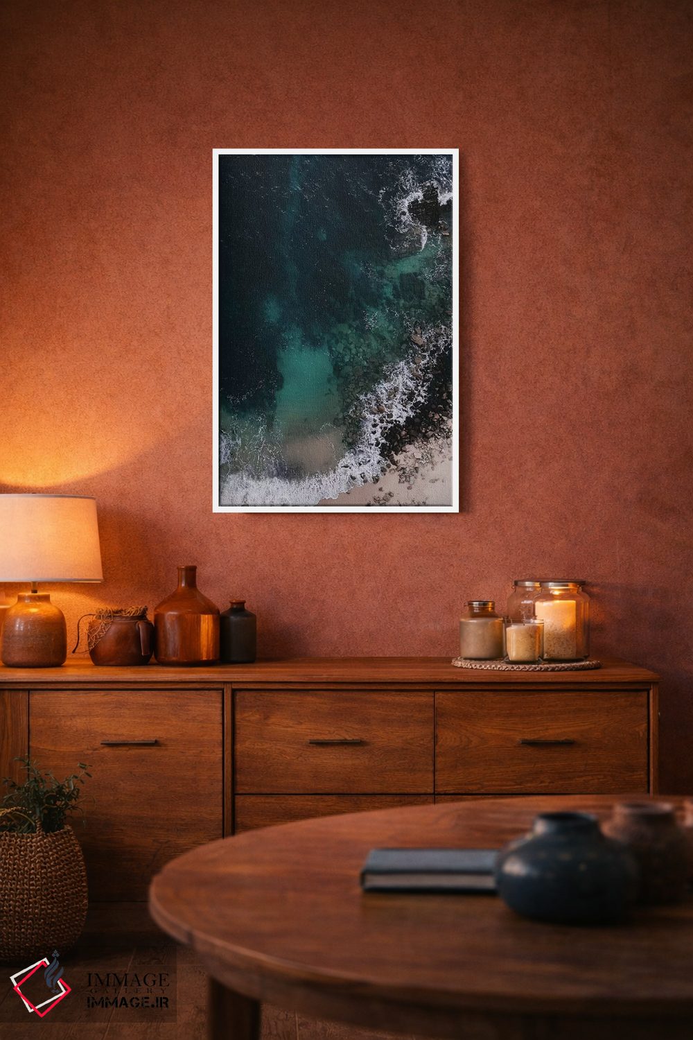 براساس پالت ترکیبی اثر، قاب تیک گرم (چوبی) پیشنهاد اول است و مشکی مات (فریم متوسط) مکمل. برای سفارشهای پروژهای با ابعاد و قابهای اختصاصی با ایماژ در تماس باشید.