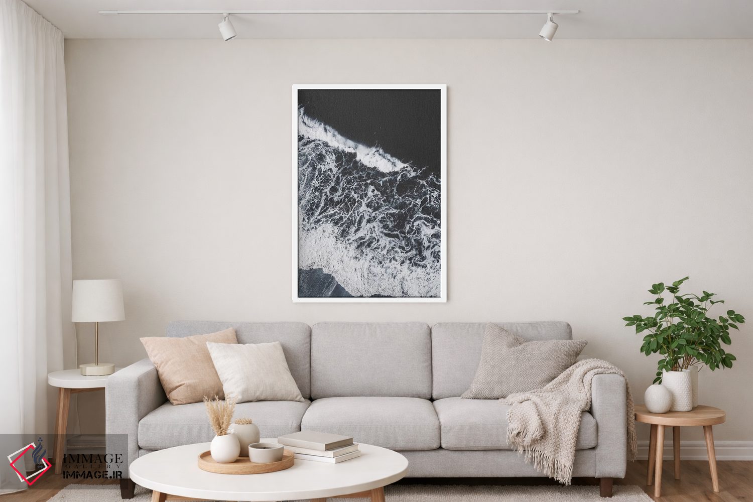 براساس پالت خنثی اثر، قاب مشکی مات (فریم باریک) پیشنهاد اول است و سفید مات (فریم باریک) مکمل. برای سفارشهای پروژهای با ابعاد و قابهای اختصاصی با ایماژ در تماس باشید.