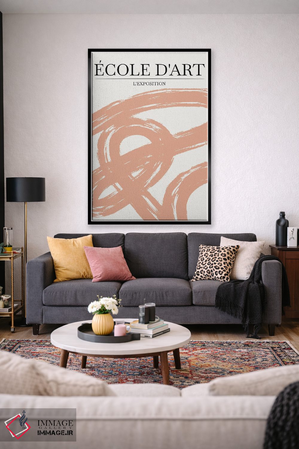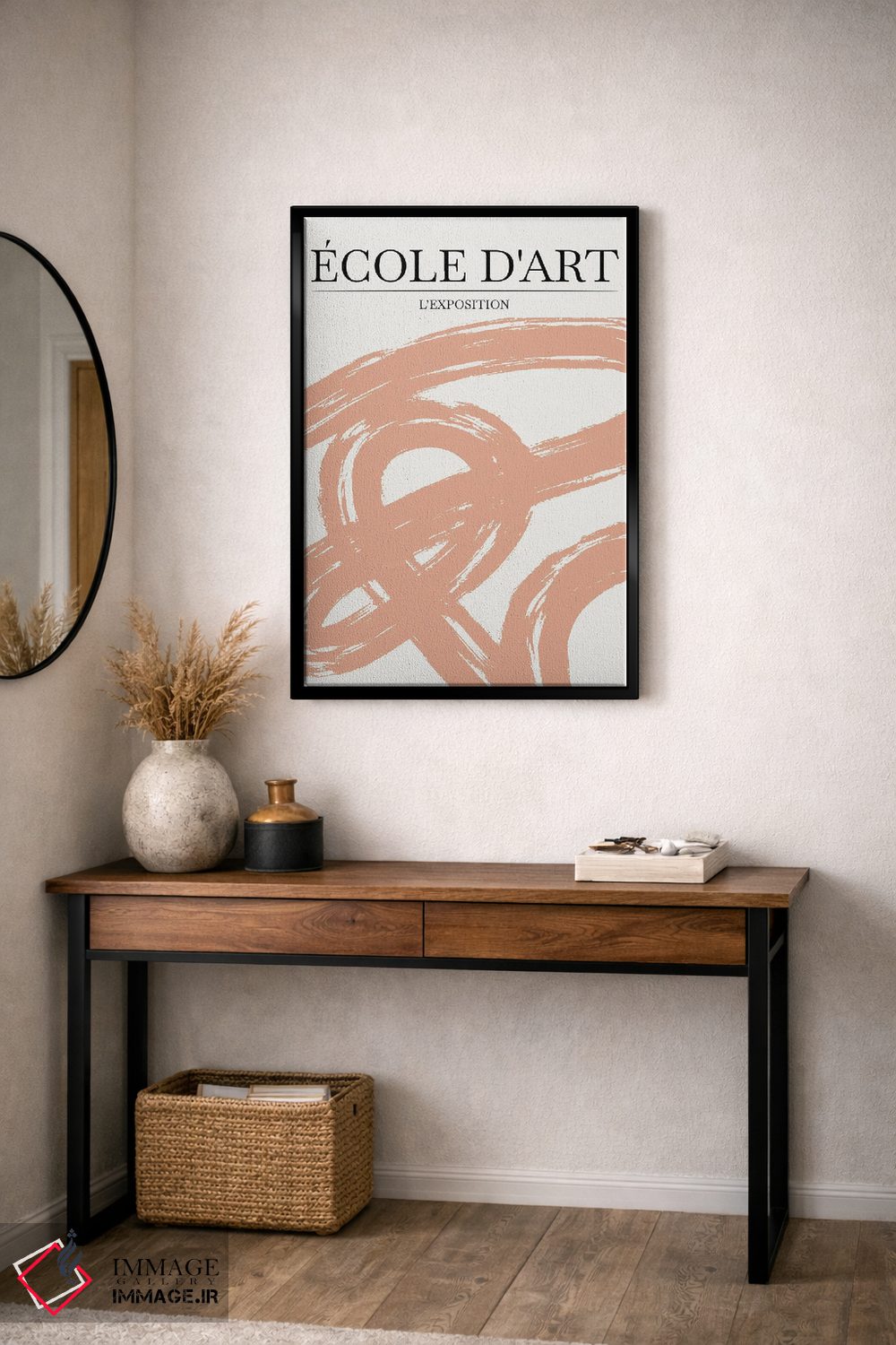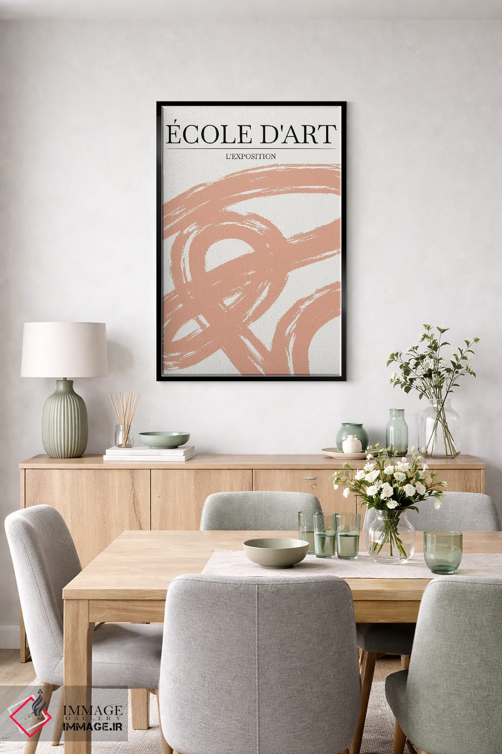 براساس پالت گرم اثر، قاب بلوط روشن (چوبی) پیشنهاد اول است و استخوانی ملایم مکمل. برای سفارشهای پروژهای با ابعاد و قابهای اختصاصی با ایماژ در تماس باشید.