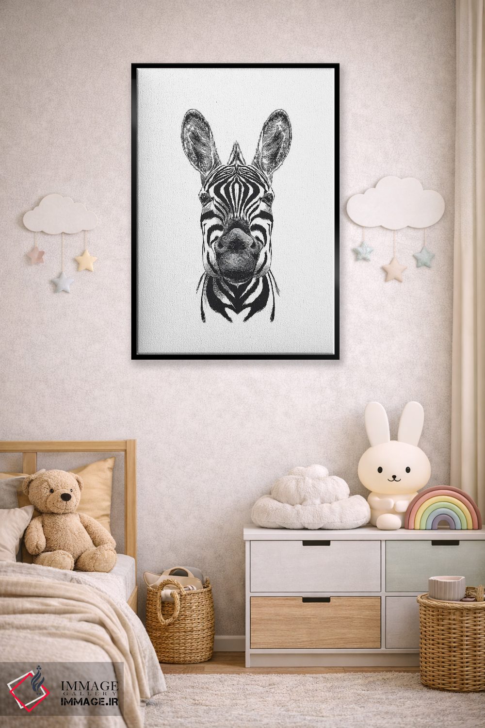 اگر میخواهید دیوار کمی سرزندگیِ محترمانه داشته باشد، «تصویرسازی گورخر» اثرِ «اینکادو (استودیو هنری، دانمارک)» در کنار رنگهای خنثی، تضاد دلچسبی میسازد، برای اتاق بازی یا گوشهٔ مطالعه گزینهٔ مناسبیست. به دیوار، قصه میدهد—اما قصهای آرام و شیک.