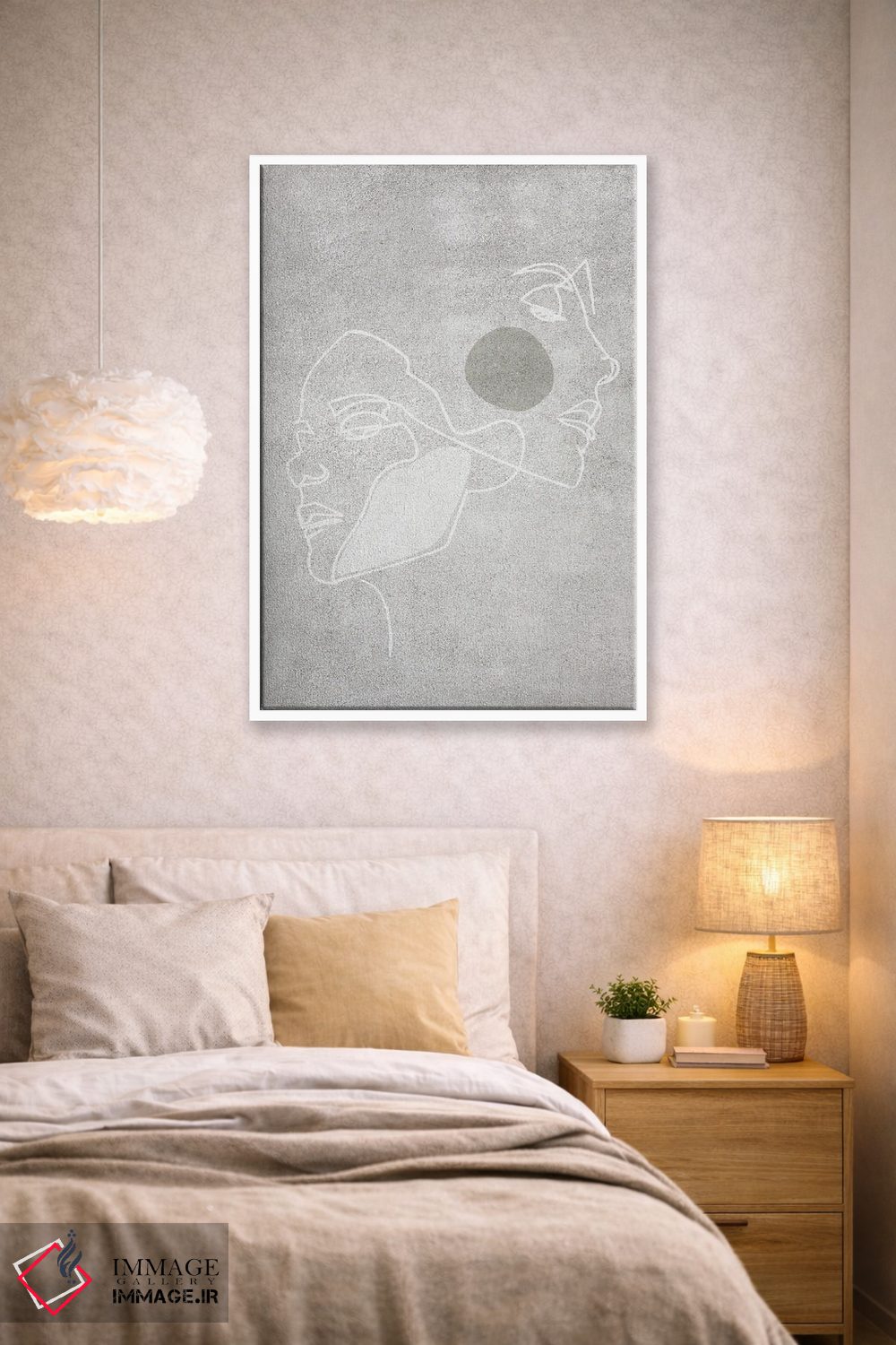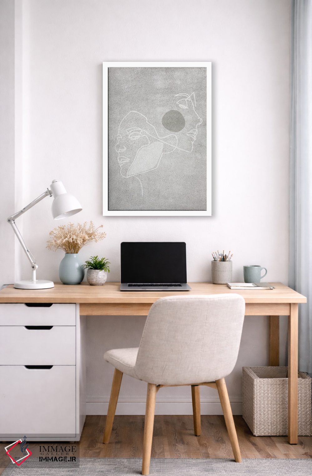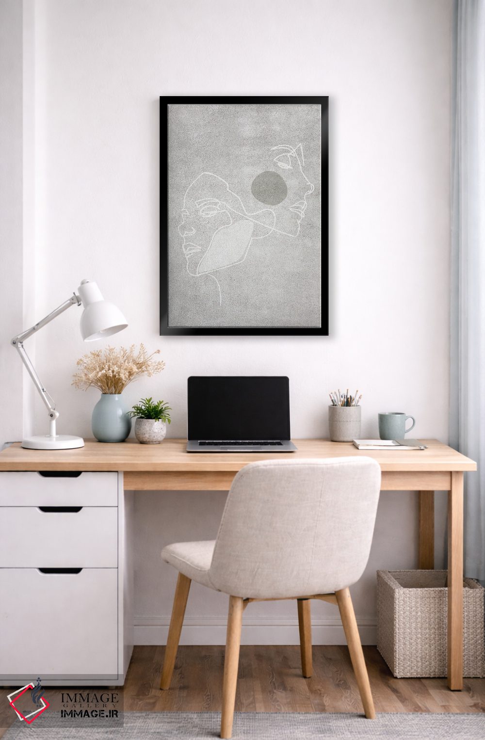 براساس پالت خنثی اثر، قاب مشکی مات (فریم باریک) پیشنهاد اول است و سفید مات (فریم باریک) مکمل. برای سفارشهای پروژهای با ابعاد و قابهای اختصاصی با ایماژ در تماس باشید.