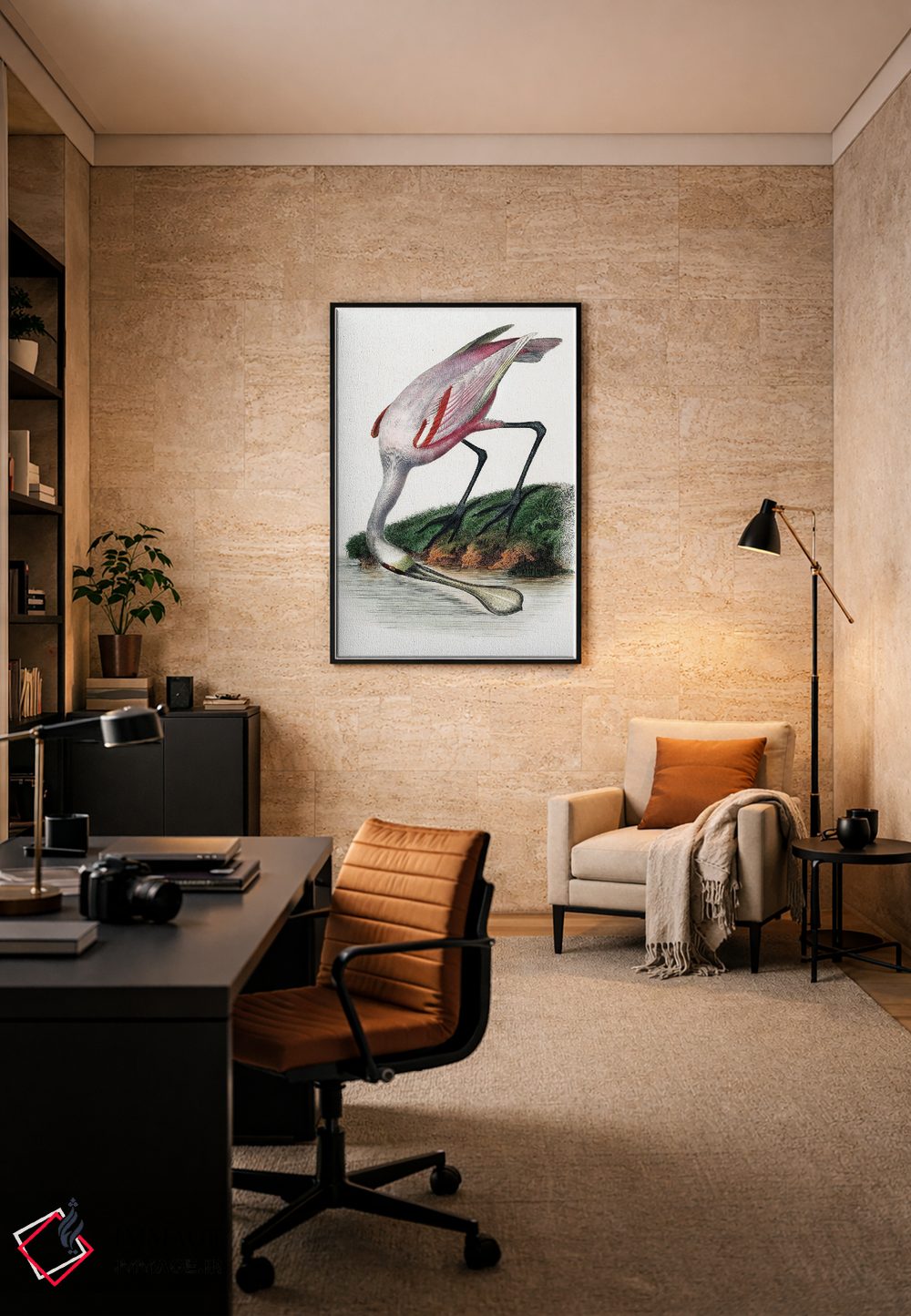 این اثر با عنوان «کفچهنوک (نوعی پرنده)» اثرِ «اینکادو (استودیو هنری، دانمارک)» به دیوار، انرژیِ نرم و زنده میدهد؛ برای خانههایی با چوب و پارچههای گرم انتخابی خوشسلیقه است. هر بار نگاهش میکنید، یک جزئیات تازه به چشم میآید.