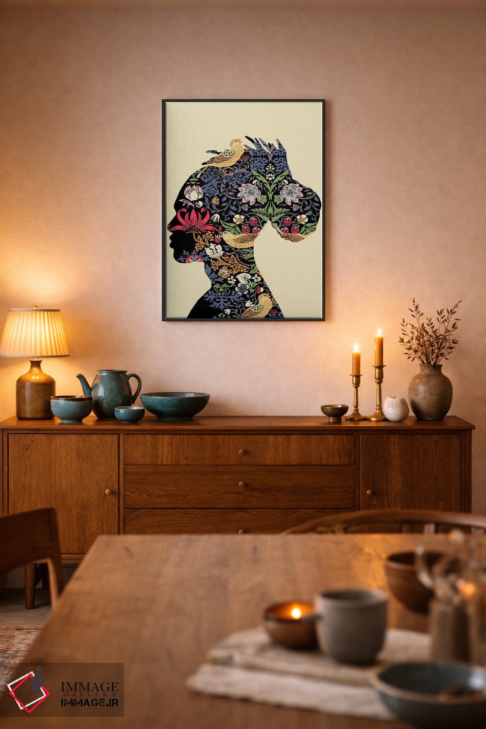 در یک جمله: اگر میخواهید در نهایت اثر در فضا «گرم و صمیمی» دیده شود، نور موضعی ملایم نتیجه را بهتر نشان میدهد و تصمیم را سادهتر میکند. برای راهنمایی دربارهی قاب، اندازه یا سفارشهای ویژه، تیم ایماژ کنار شماست تا انتخاب نهایی دقیقتر انجام شود.